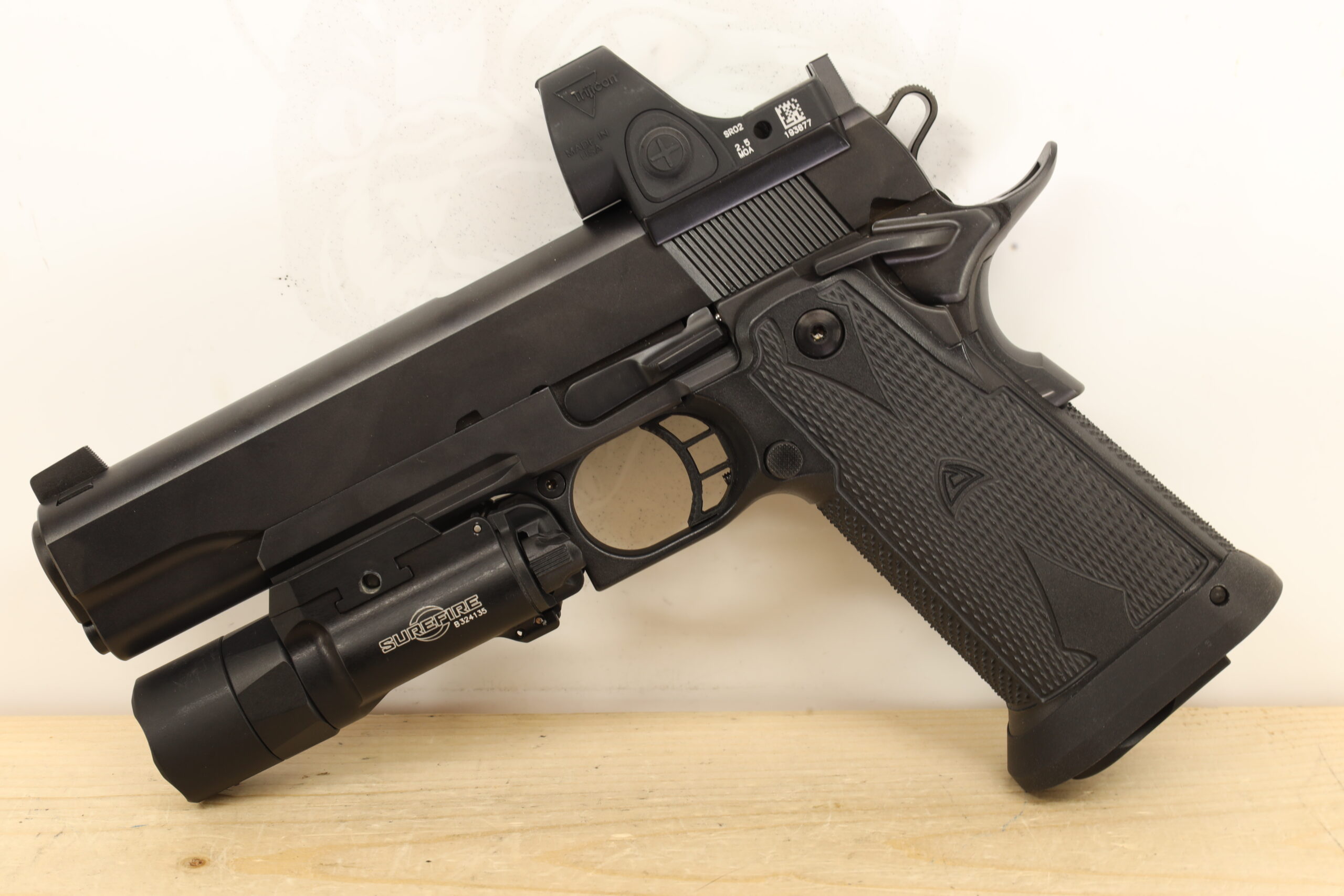 The Alchemy Custom Weaponry Quantico Hicap 9x19mm is a high-quality, craftsmanship-driven firearm known for its attention to detail and innovative design. Its 5-inch barrel offers optimal accuracy, and it is packed with features including a TRIJICON SRO optic, thumb safety, and grip safety. As a testament to its durability, this used model remains in great condition, with one magazine included.