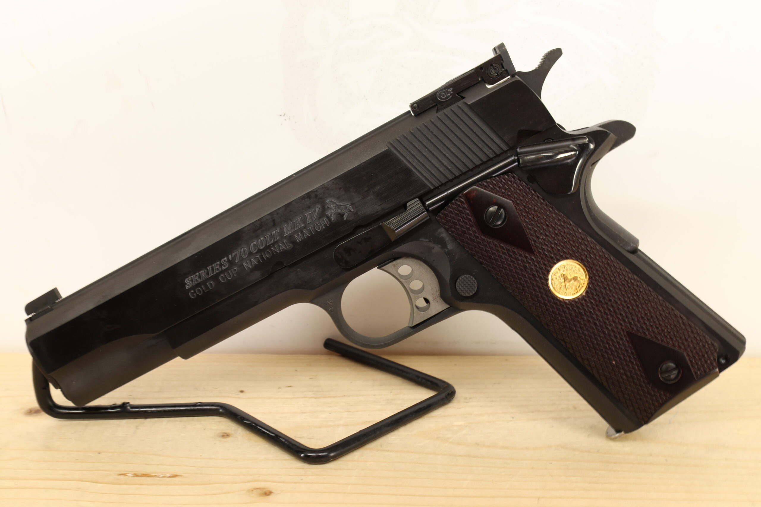 The all-new Colt Gold Cup National Match 9x19mm is a high-quality, precision firearm, designed for competitive use. Boasting a 5″ Barrel, grip safety, and thumb safety, the firearm is crafted with versatility, accuracy, and user safety in mind. A single magazine and durable case are included to ensure ease of use, safe handling and storage.