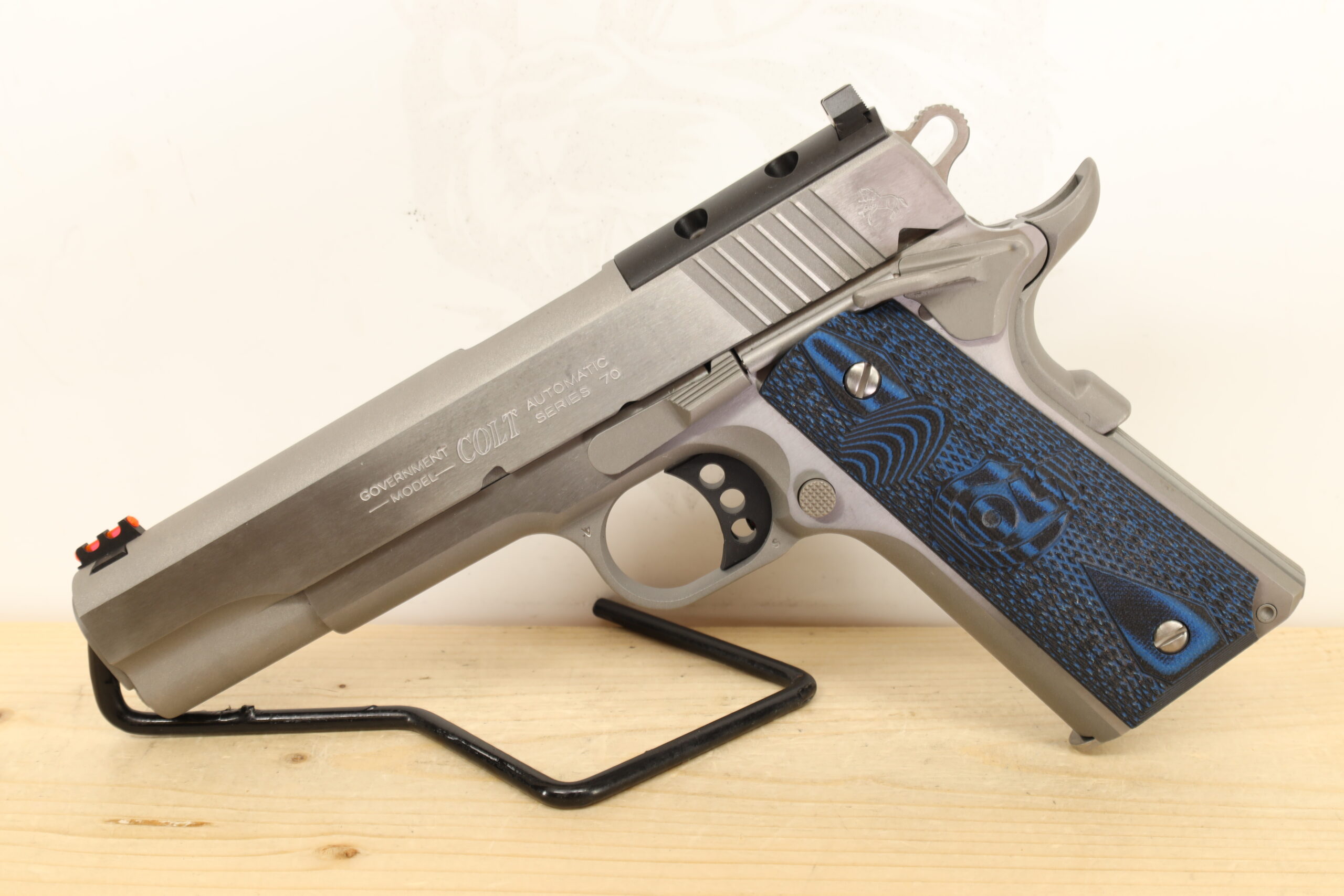 The Colt Government Model 9x19mm, a used option in great condition, takes the famed Colt design into the 9x19mm caliber for versatile use. This handgun features a 5″ barrel, with both grip and thumb safety, but with an additional optically ready feature for adding scopes or sights. Packaged in an official Colt case, it also includes one magazine, designed for those favoring customizability.