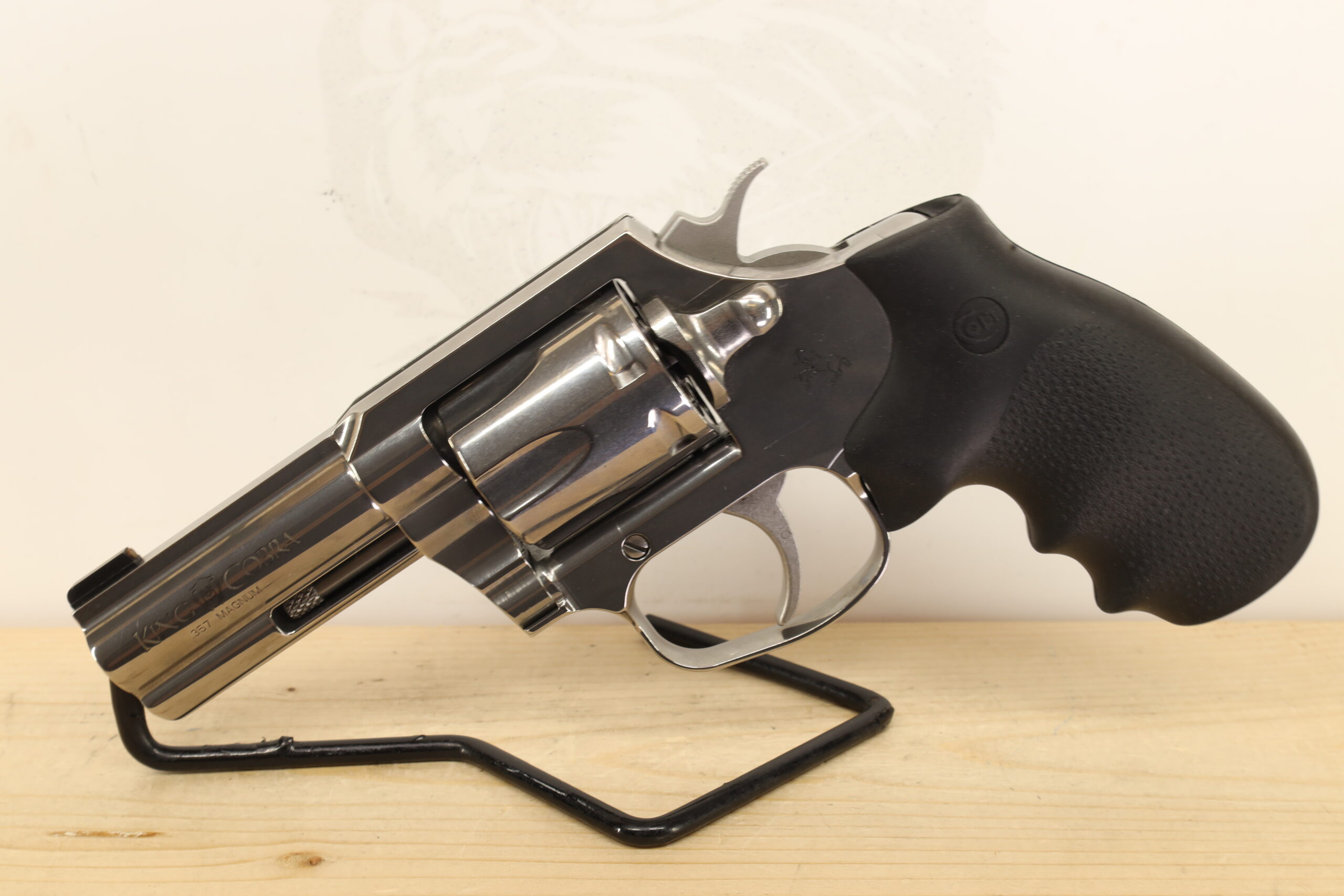 The Colt King Cobra in .357 Magnum is an exemplar of Colt’s long-standing tradition of excellence in revolver manufacturing. This particular model is a six-shot, double-action revolver with a 3″ barrel. Its compact size coupled with the potent .357 Magnum cartridge makes it a desirable choice for personal defense. It comes in a box or bag for ease of storage or transportation.