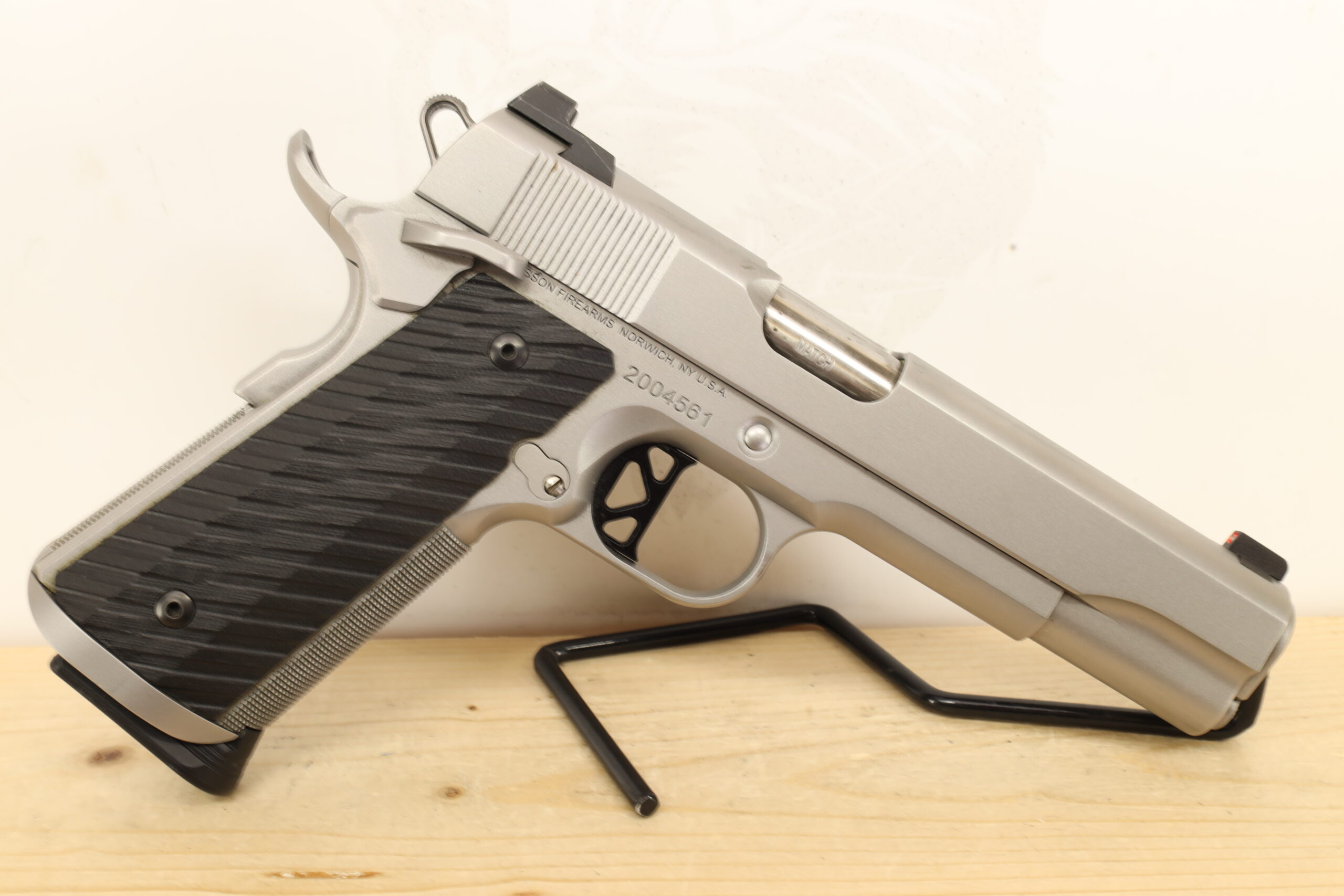 The DAN WESSON Valor in 45ACP is a finely crafted firearm known for its reliability and precision. This model, in great condition, comes with a 5″ barrel which contributes substantially to its accuracy at varied ranges. The presence of a grip safety and a thumb safety ensures confident handling and adds to the overall security of operation. Furthermore, this firearm comes with one magazine, enhancing your shooting experience despite lacking the original box. The Dan Wesson brand is reputable for their high-quality construction and unwavering performance, making the Valor 45ACP a suitable choice for an array of shooting applications.