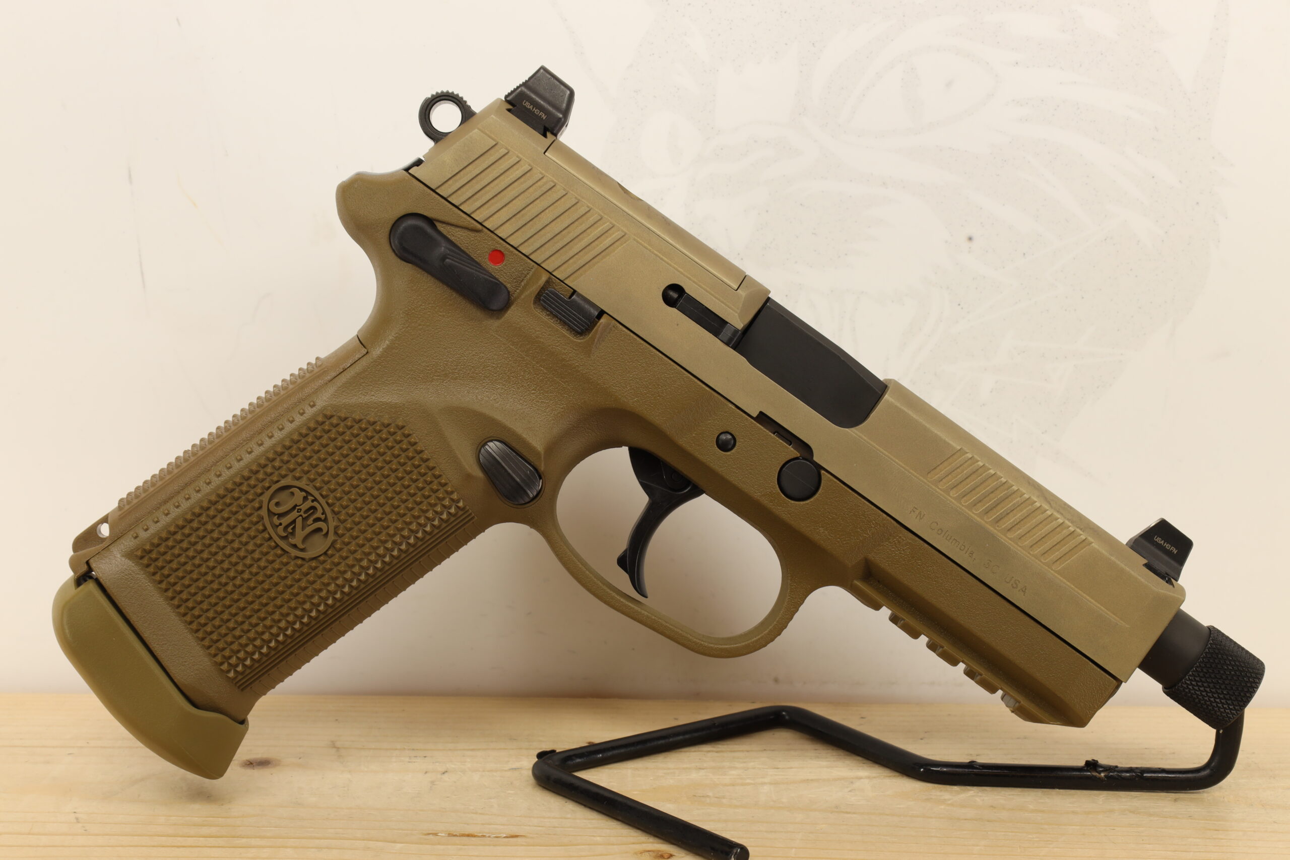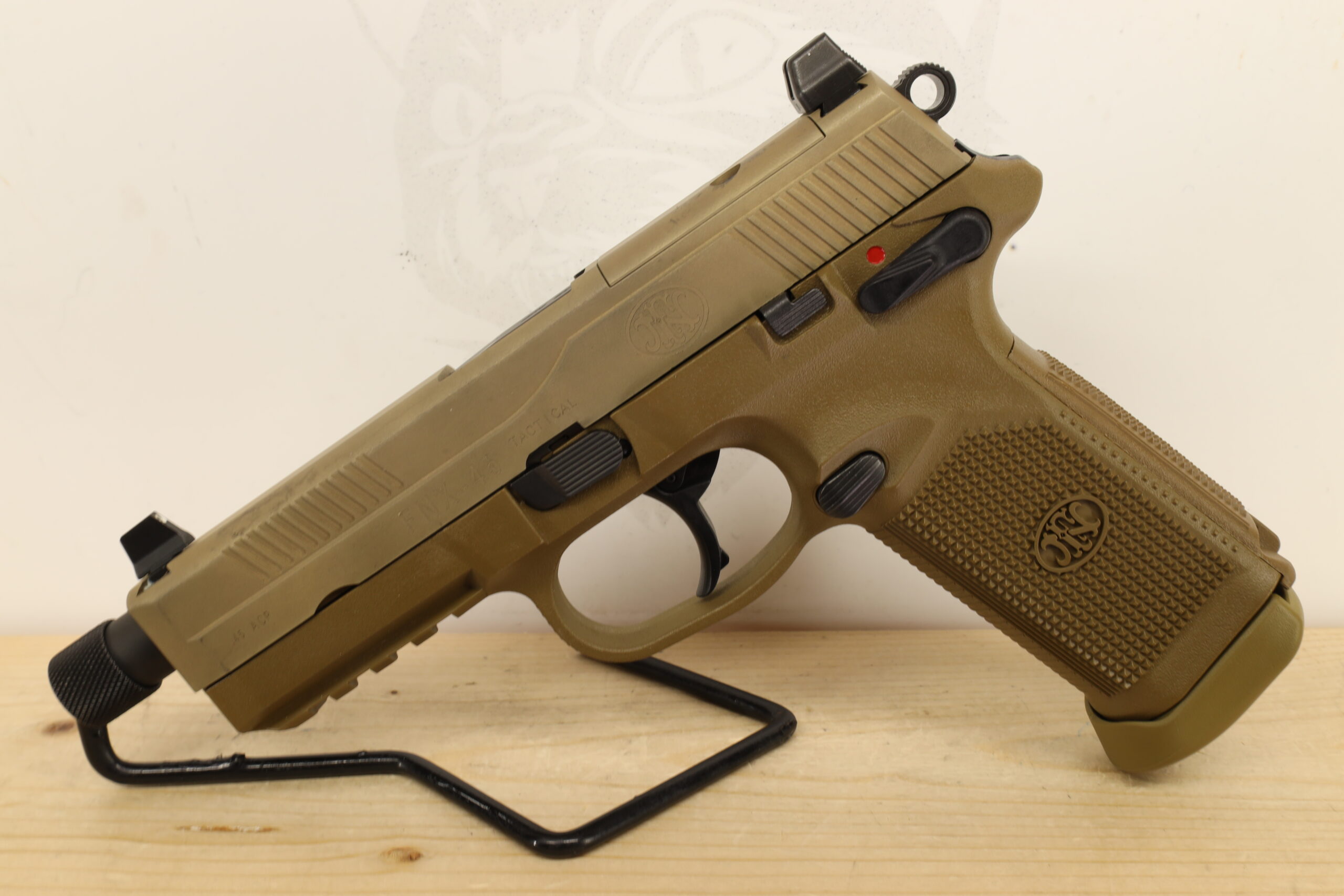 The FNH FNX-45 Tactical in 45ACP is a full-featured handgun with a 5.25″ threaded barrel, designed for enhanced accuracy. It’s optic ready, meaning it can accept a variety of sight options. It includes a thumb safety and one magazine, alongside either a box or bag.