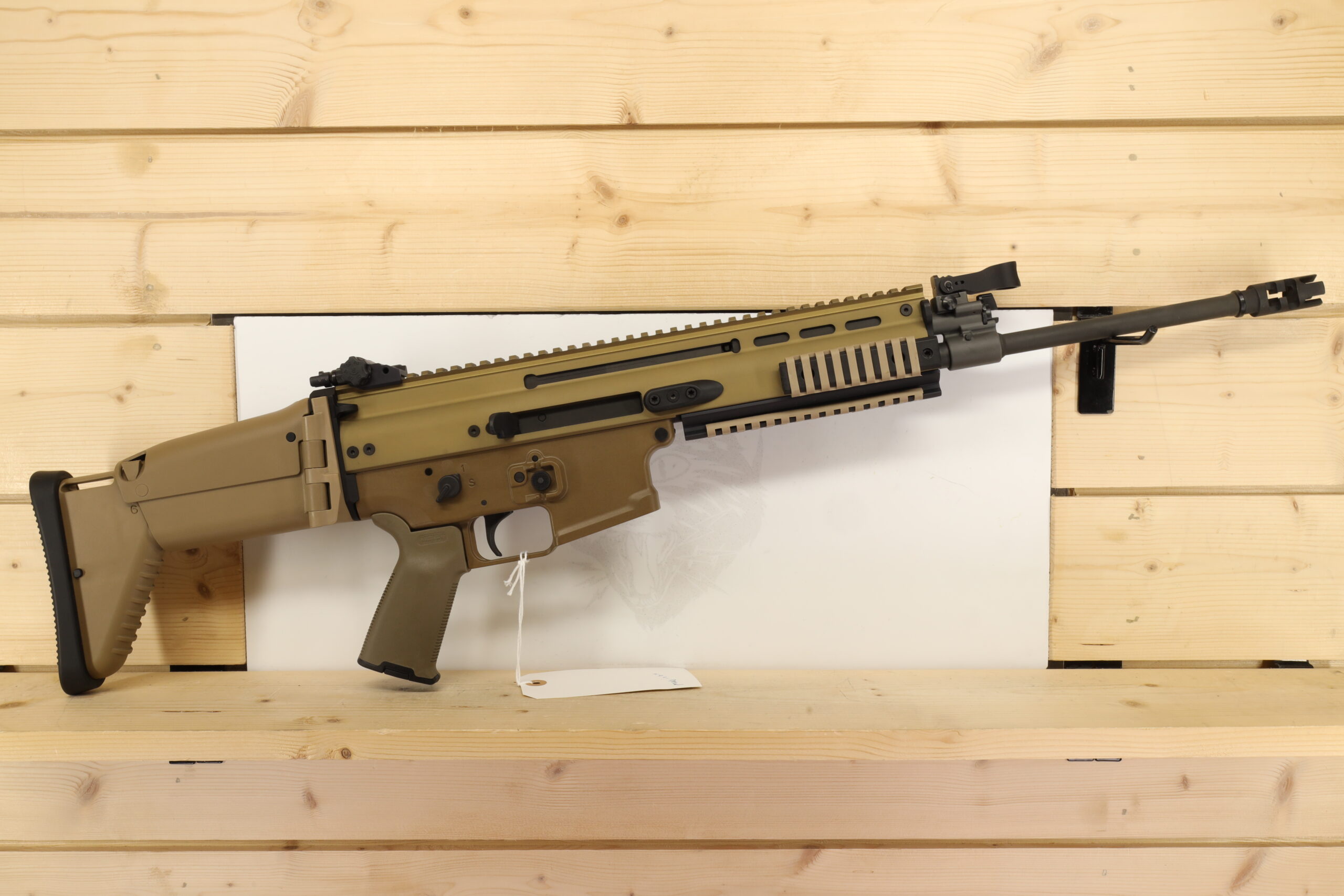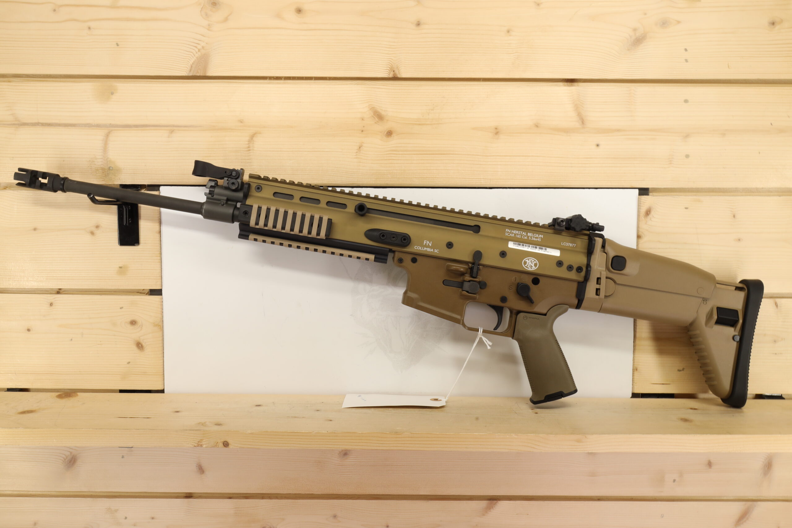 The FNH SCAR-16, chambered in 5.56×45, is a lightweight, robust rifle boasting a top tier reputation. This used model is in great condition, featuring a 16″ threaded barrel and a thumb safety. Developed by FNH, a manufacturer known for military-grade weapons, this model comes with a single magazine, but without a box.