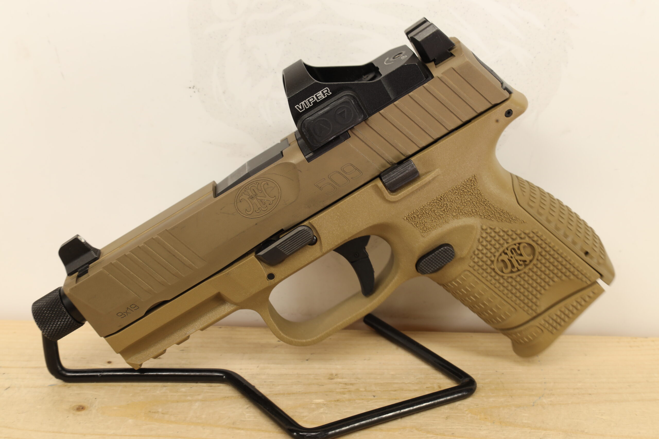 The FNH USA 509 9x19mm is a highly versatile semi-automatic firearm perfected by FN America, an evolution of their earlier FNS series. This particular model comes with a 4.25″ threaded barrel, ideal for suppressor or compensator attachment. The mounted Vortex Viper optic enhances the precision for quick target acquisitions. Further, it includes three magazines and a box or bag, increasing its practical usability.