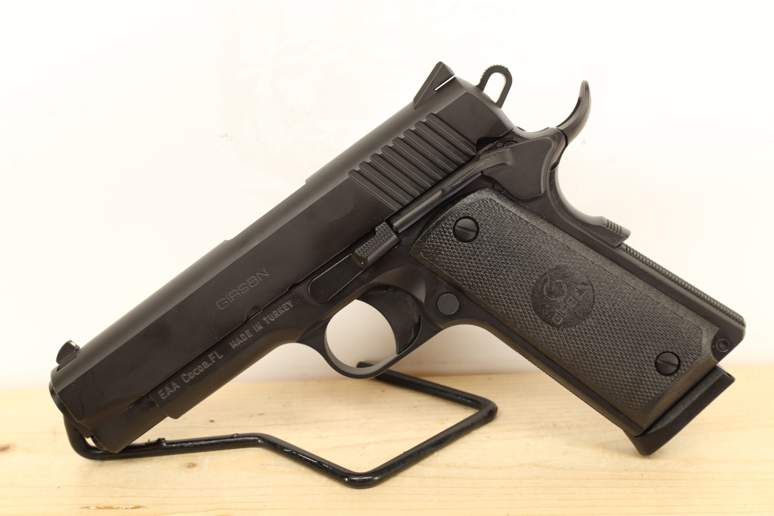 Girsan’s MC 1911 C XLV 45 ACP, a used firearm in top-notch condition, has a 4.2″ barrel, grip safety, and thumb safety. An echo of the renowned 1911 design, this Turkish firearm adds a dash of refinement and robustness to an already well-respected line of handguns.