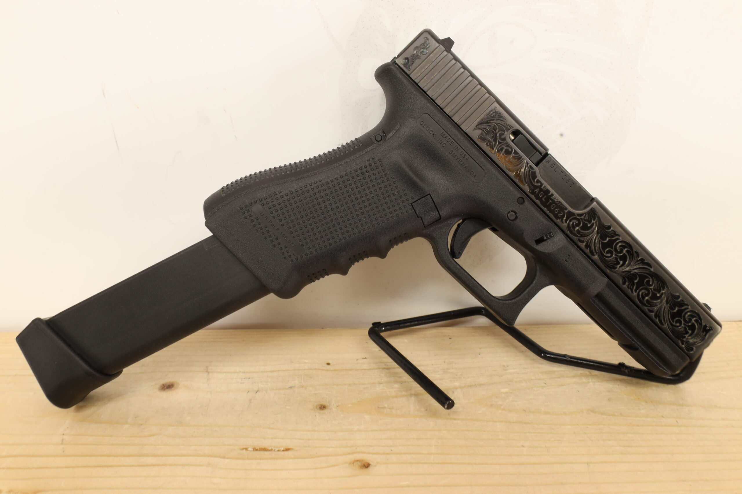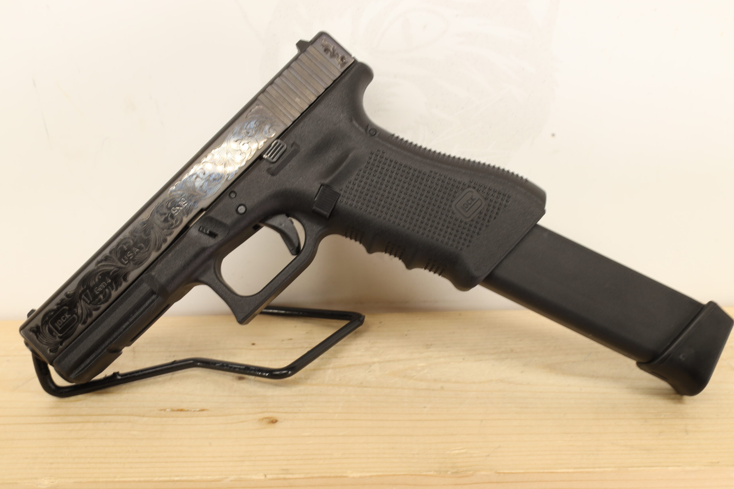 The Glock 17 Gen 4 is a 9x19mm handgun designed by Austrian manufacturer Glock. This particular model, which is used but in great condition, features an engraved 4.4″ barrel and one magazine. Recognized for its durability and powerful performance, this weapon is considered a reliable choice worldwide but does not include a box.