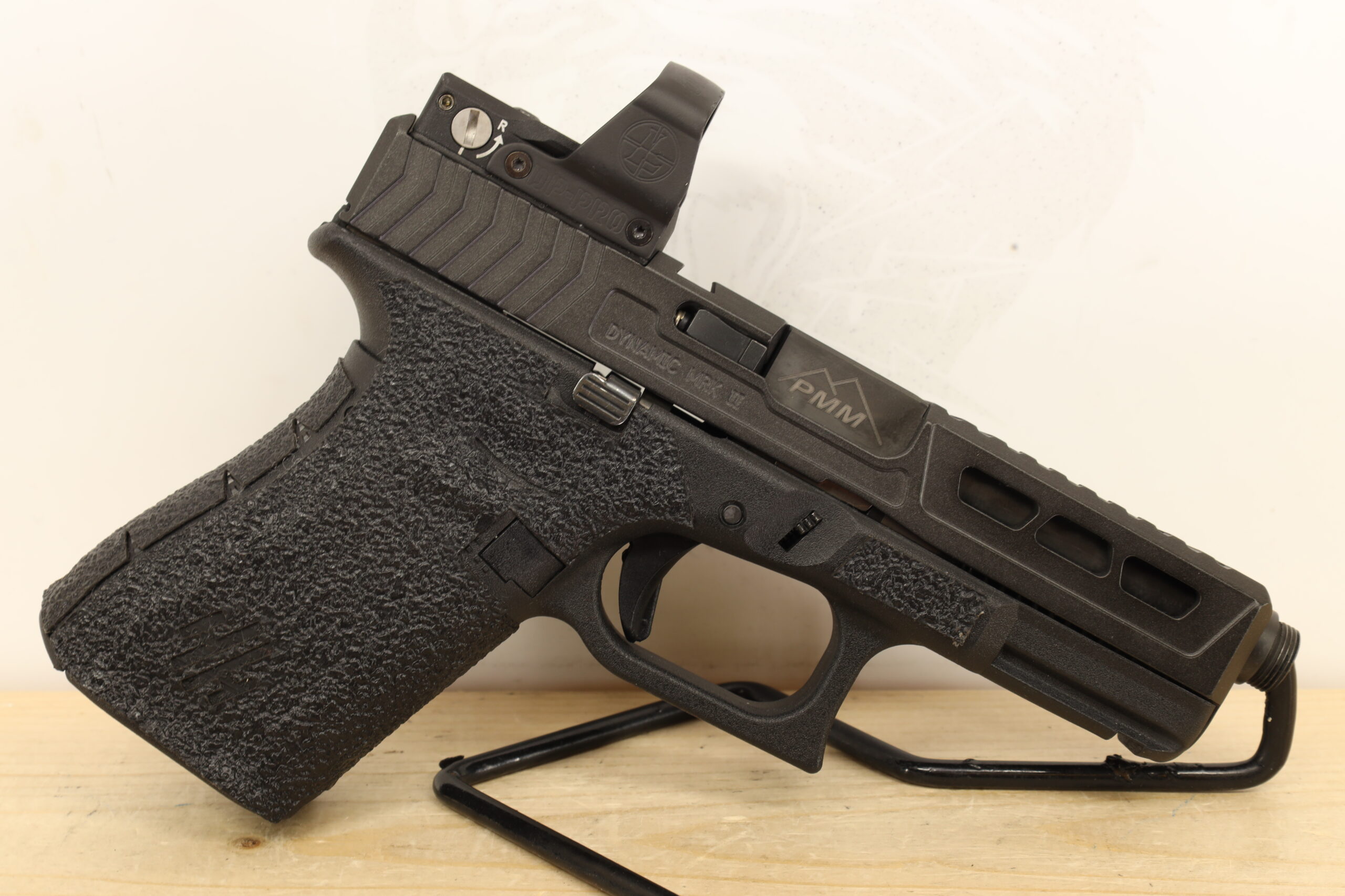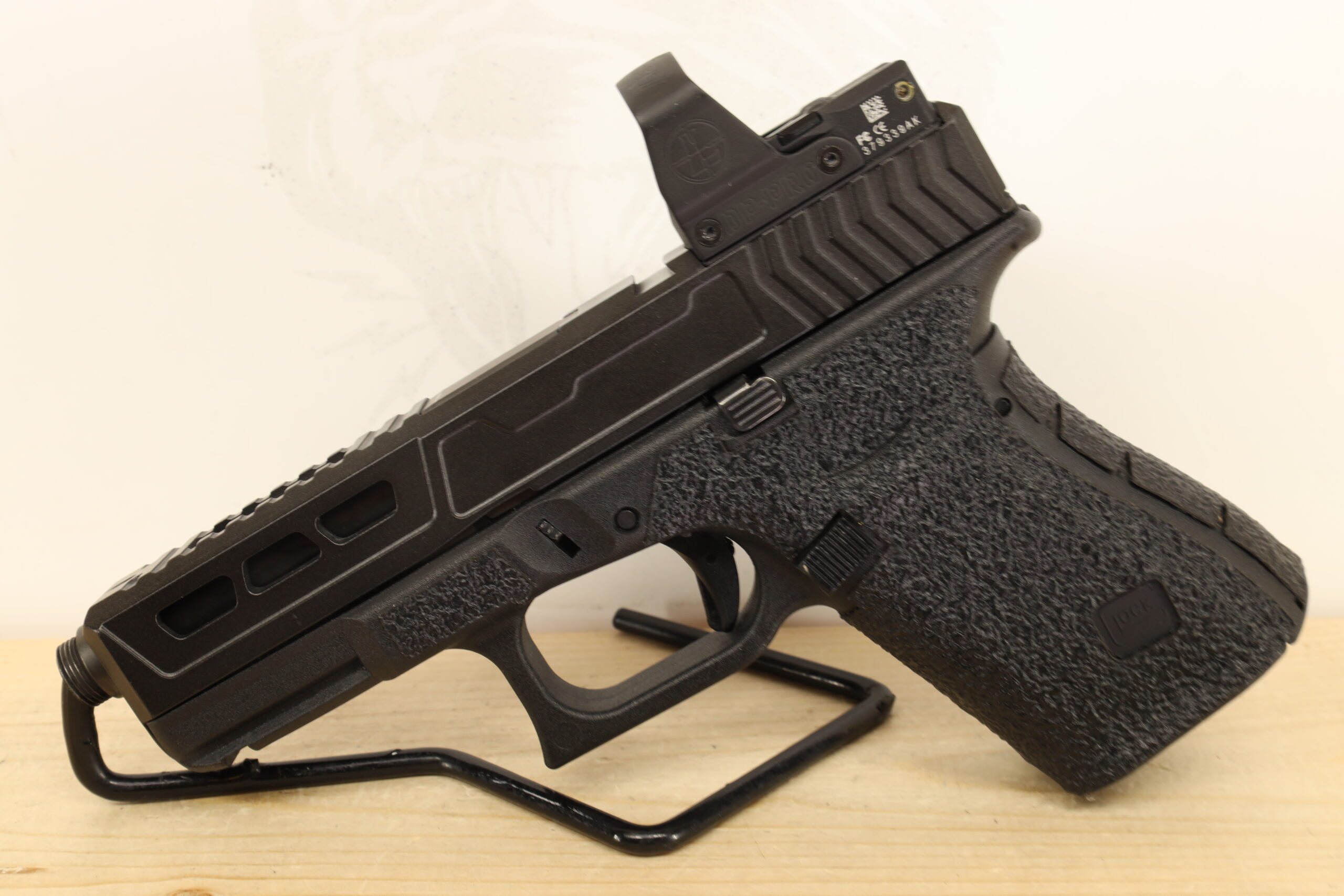 Known for its compact size, the **GLOCK 19 GEN 5** is chambered in 9x19mm and comes with a 4.2″ threaded barrel which makes it suppressor-friendly. Partnered with a LEUPOLD DP-PRO optic, this Glock offers excellent accuracy. The fifth generation of this model sees improvements in design, handling, and overall performance. One caveat, this used model does not include a magazine or box.
