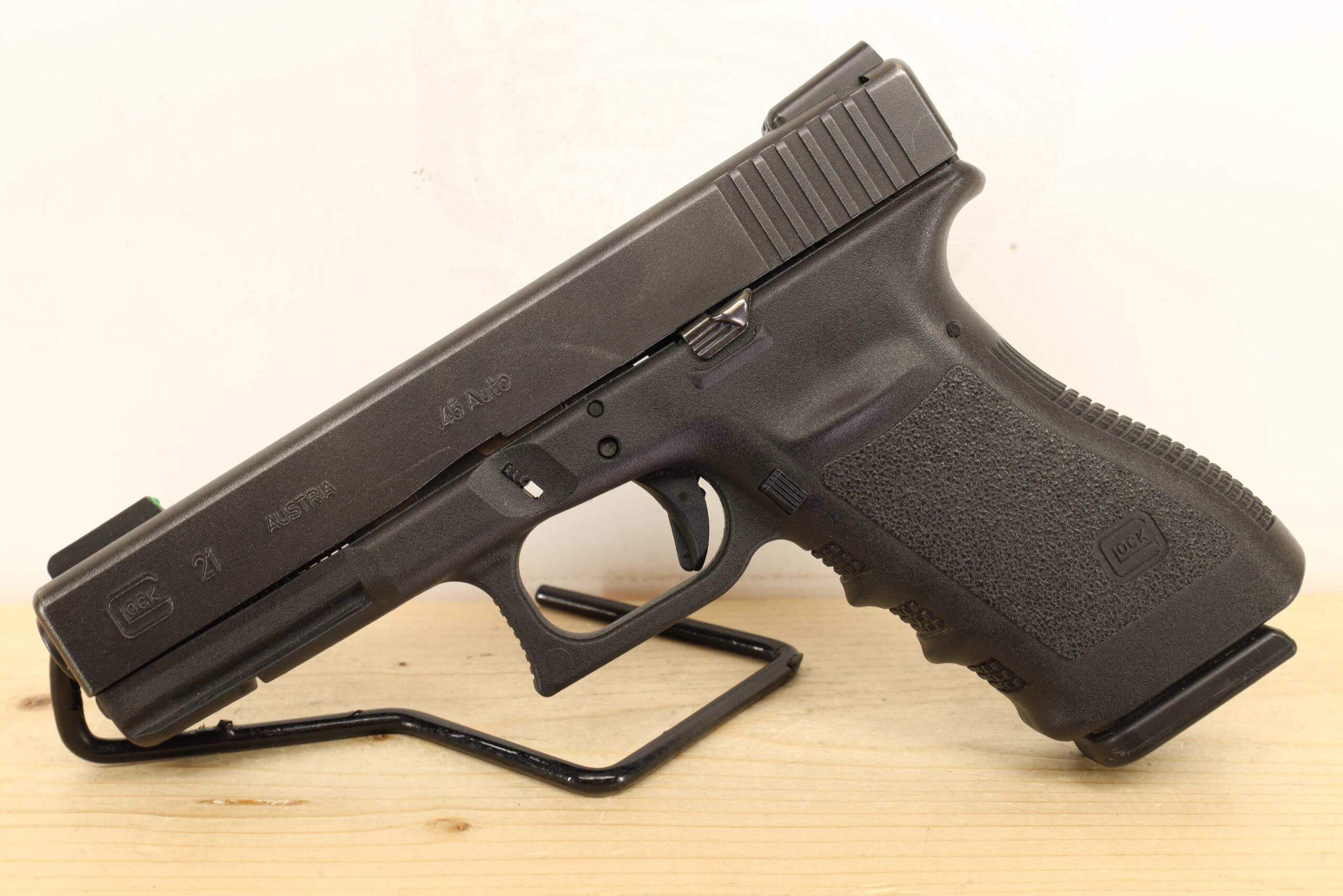The Glock 21 45 ACP continues the brand’s tradition of exceptional reliability and performance. This used firearm is in an exemplary state with a 4.5″ barrel and it comes along with three magazines and a case.