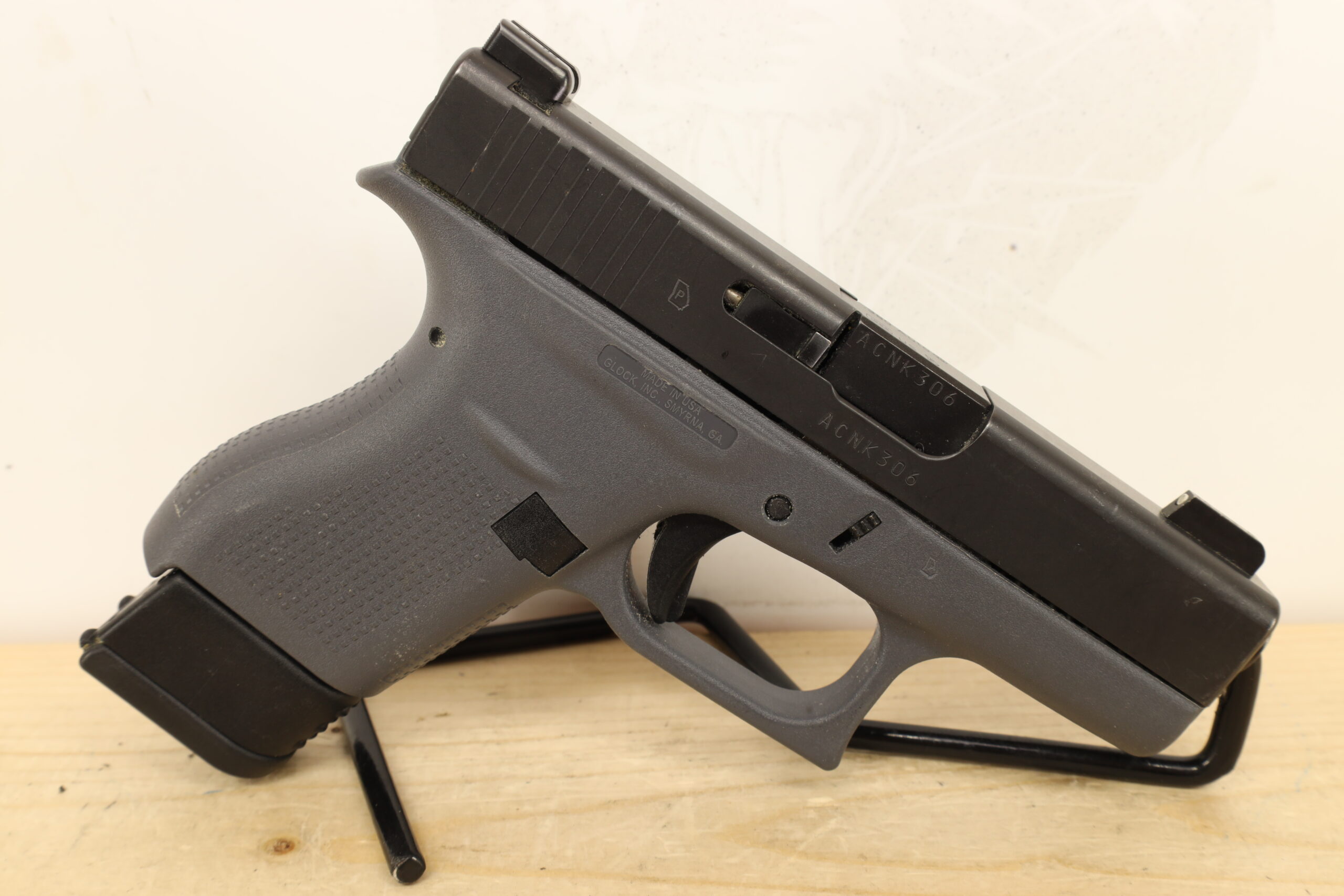 The Glock 42, chambered in .380 ACP, offers impressive stopping power in a highly compact design. With a 3.2″ barrel, this semi-automatic is easy to carry while maintaining a reasonable level of accuracy. Glock is infamous for consistent quality and sturdiness that compliments a diverse range of shooting needs.