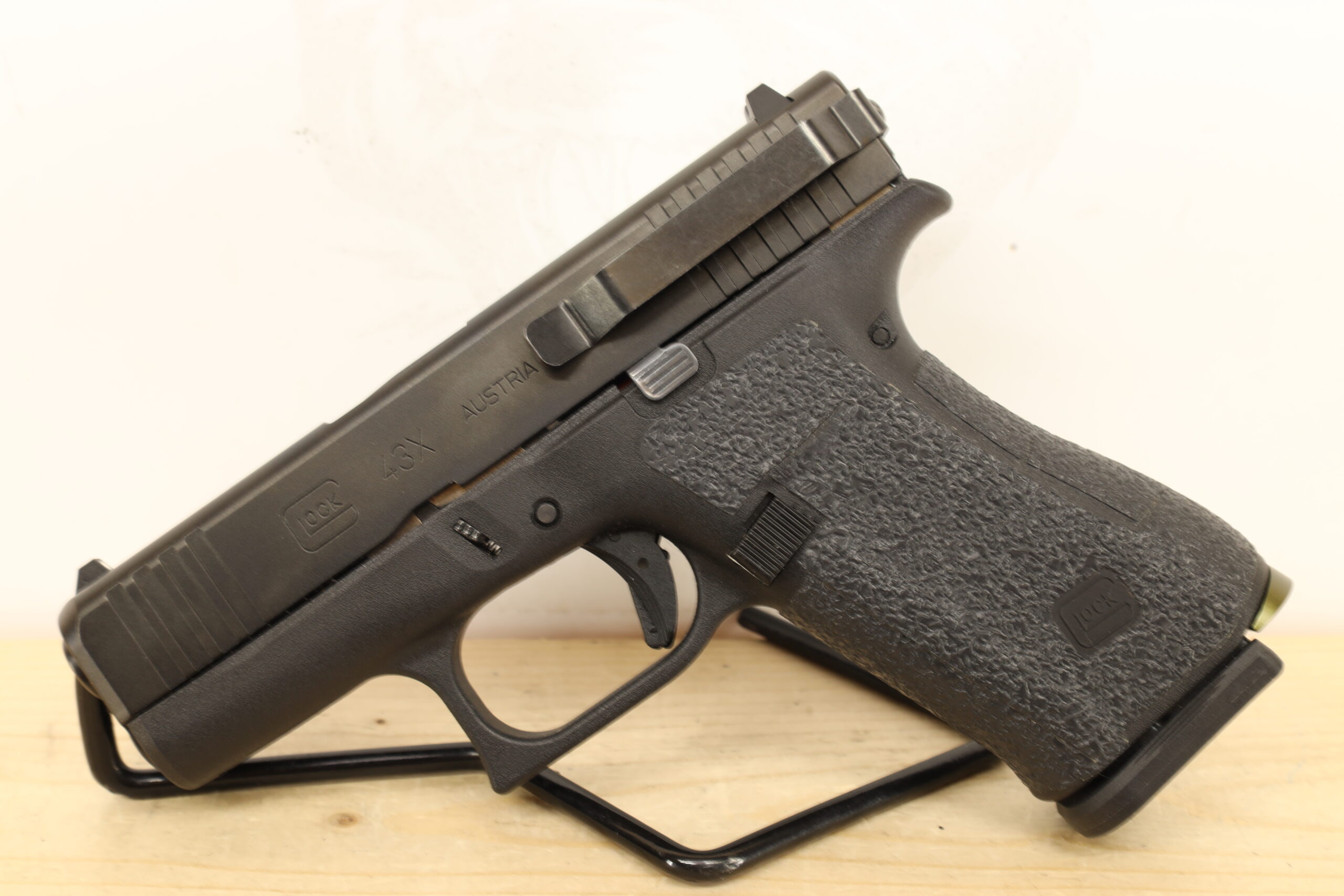 The Glock 43X is a subcompact 9x19mm pistol appreciated for its compact size and reliability. This used model shows excellent maintenance and comes with two magazines stored in a secure case. Glock is renowned globally for making robust, reliable firearms that are easy to handle.