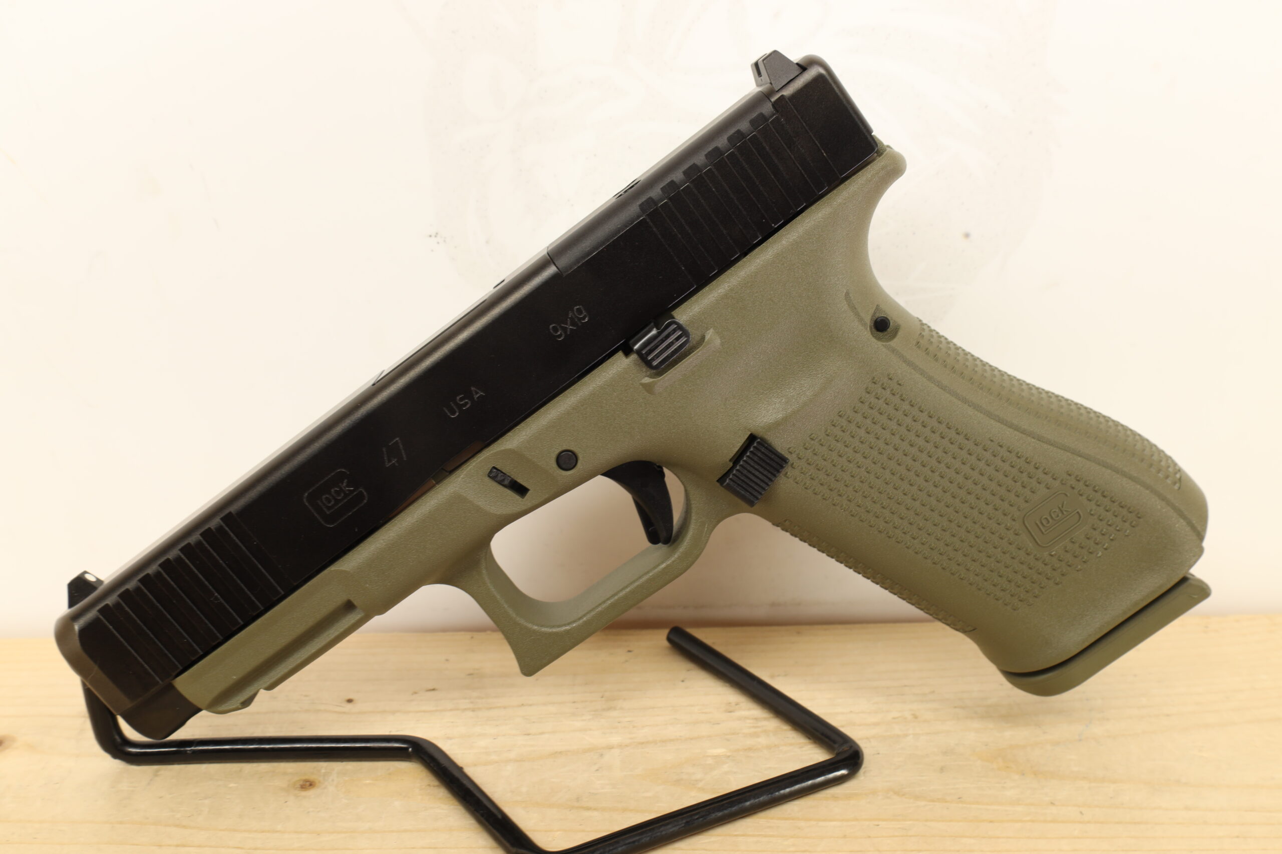 Glock 47 in 9x19mm. This model features a 4.4-inch barrel that balances portability and ballistic performance. It comes optic-ready and with three magazines in its case, making it a robust world class choice for personal defense situations.
