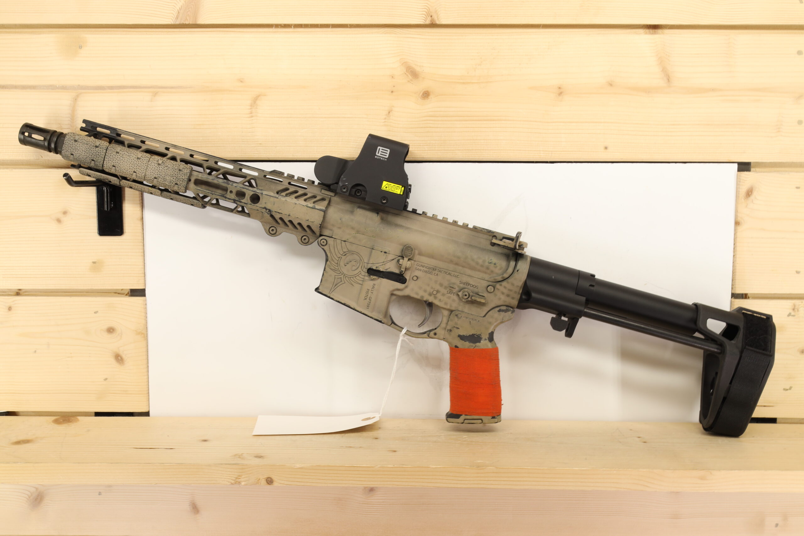 The Gunfighter Tactical Rally 5.56×45, used but in wonderful condition, possesses an 11″ threaded barrel. Optimized for outstanding performance with an EOTECH REDDOT optic, this model also includes a thumb safety and six magazines. Gunfighter Tactical stands by superior engineering and meticulous manufacturing standards.