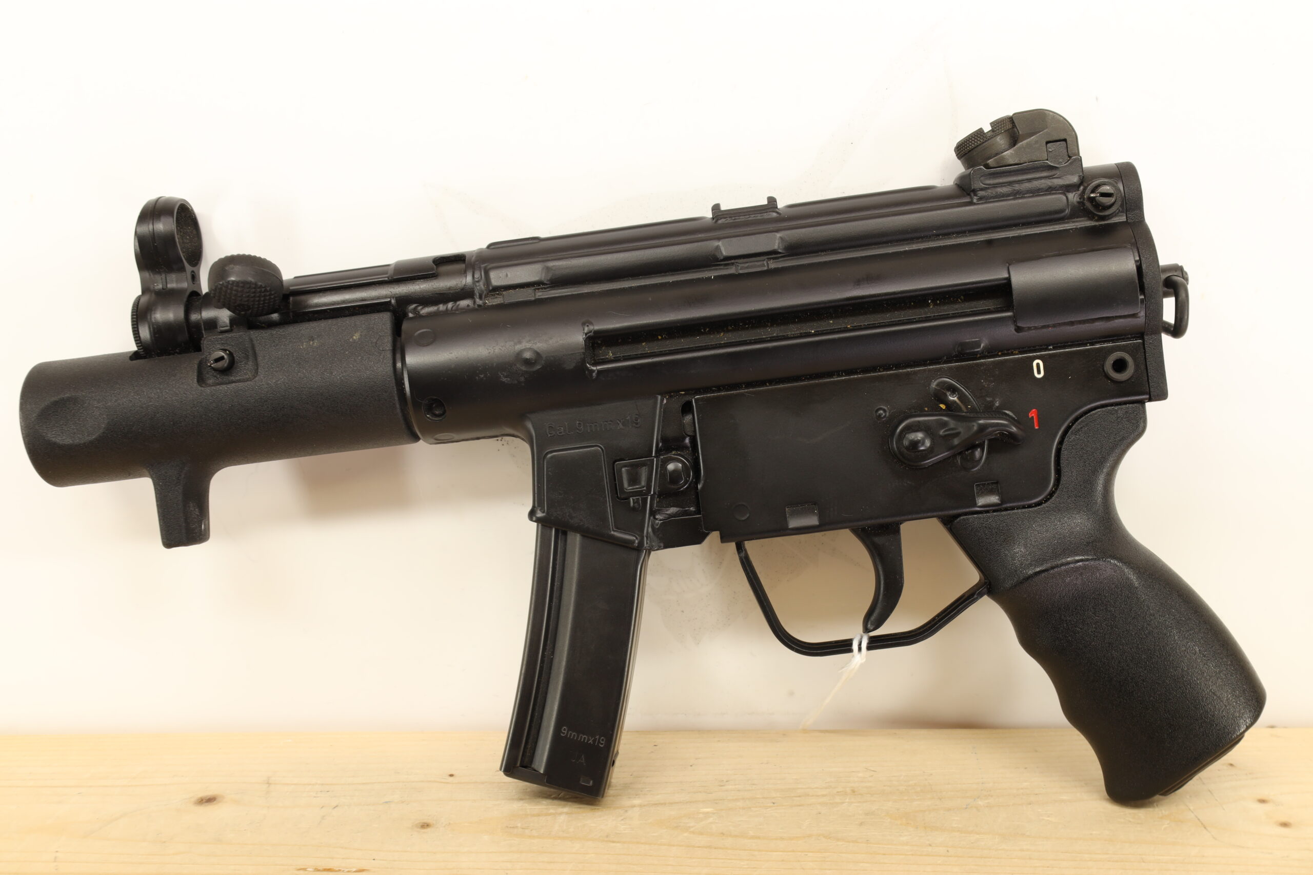 The **Heckler & Koch SP89 9x19mm**, with its 6.2″ barrel and thumb safety, is an appealing option for shooting enthusiasts. This short-barreled pistol offers a single high-capacity magazine and a box or bag. Further setting it apart is the iconic H&K brand that stands for the highest quality and innovative design.