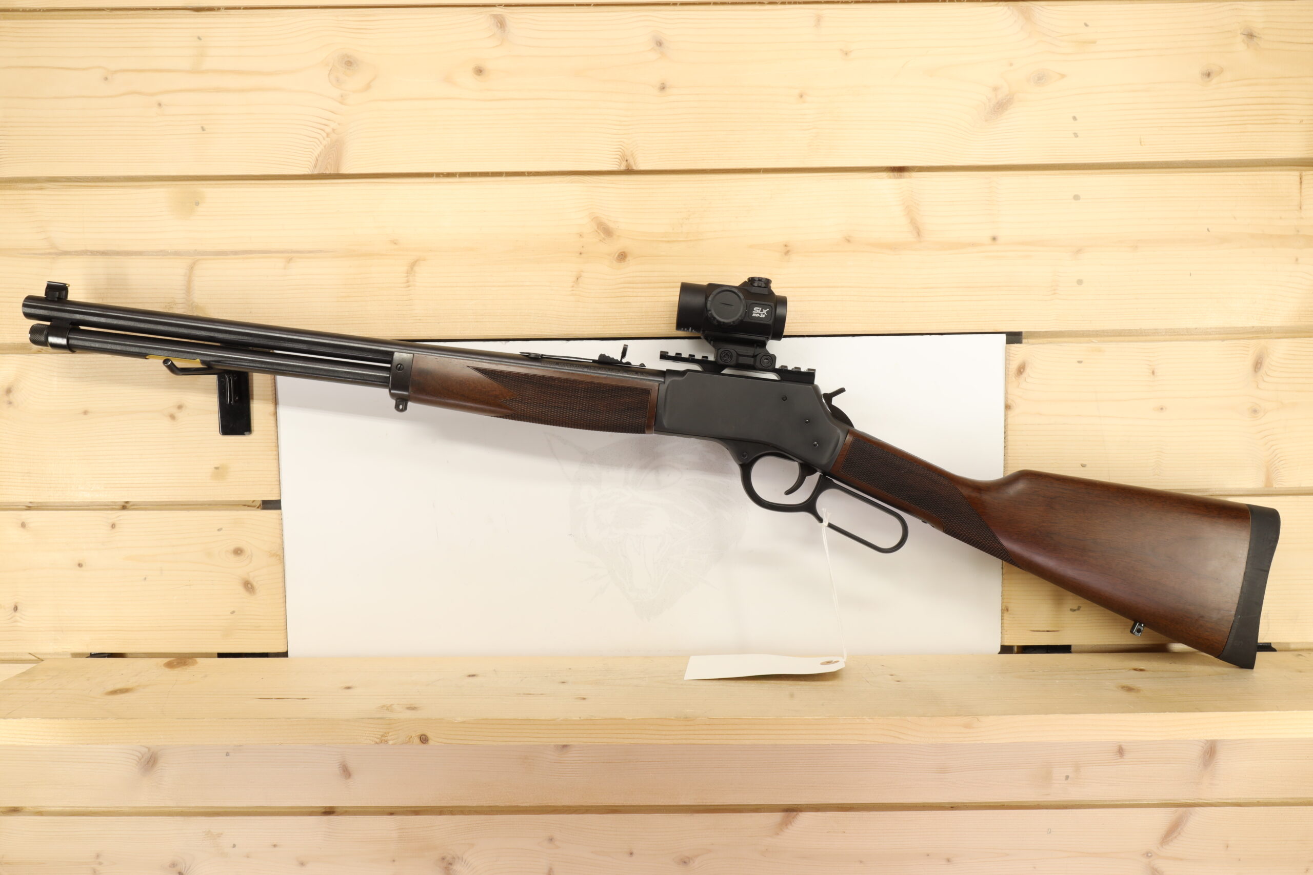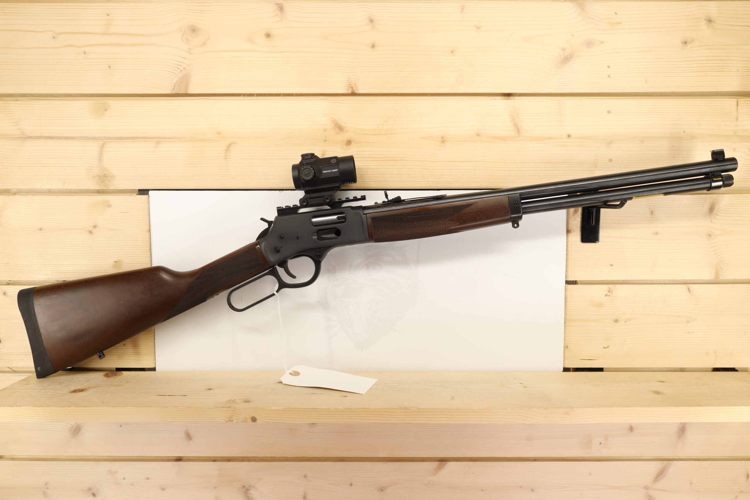 The Henry Repeating Arms Big Boy is a 44 Rem/44 Sp caliber firearm from the American company Henry Repeating Arms. This long arm in great condition features a 19″ barrel and Primary Arms SLX-MD-25 optic. Commending a glorious tribute to America’s Wild West era, this model offers a perfect blend of power and precision, and it includes a box or bag.