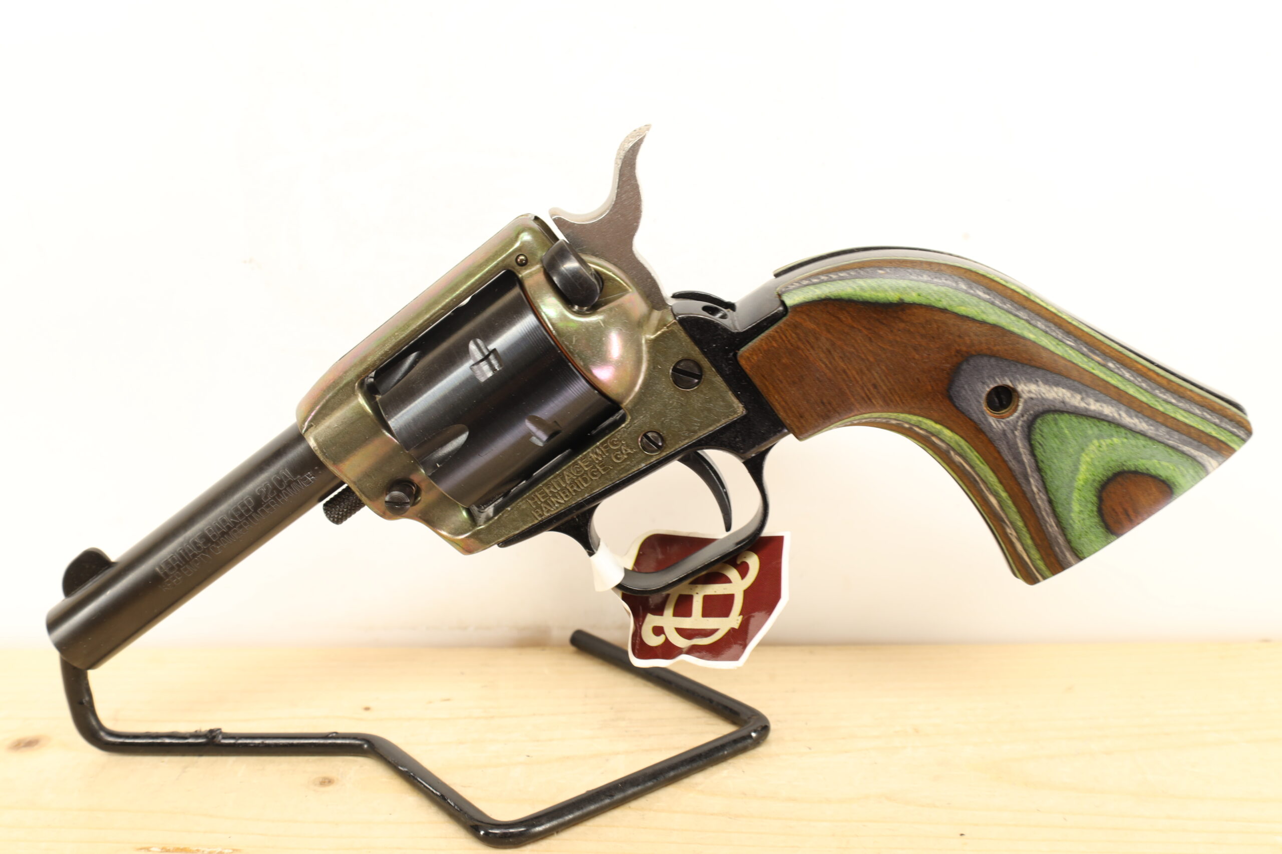 The Heritage Manufacturing Barkeep in 22 Magnum|22 LR is a classic beauty that comes in great condition despite being previously owned. Each single-action revolver holds 6 rounds and comes with a box or bag. As Heritage Manufacturing excels in creating quality firearms, these revolvers provide an old west feel with modern performance.
