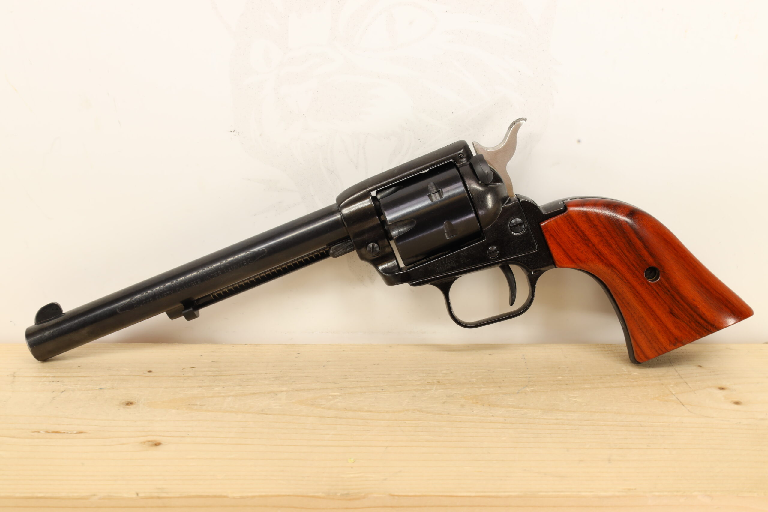 The Heritage Manufacturing Rough Rider chambered in 22LR is known for its Western-style appeal and affordability. This single-action revolver has a longer 6.5″ barrel for a vintage look and feel. Despite being a fun plinker, it also serves as a reliable choice for small game hunting.
