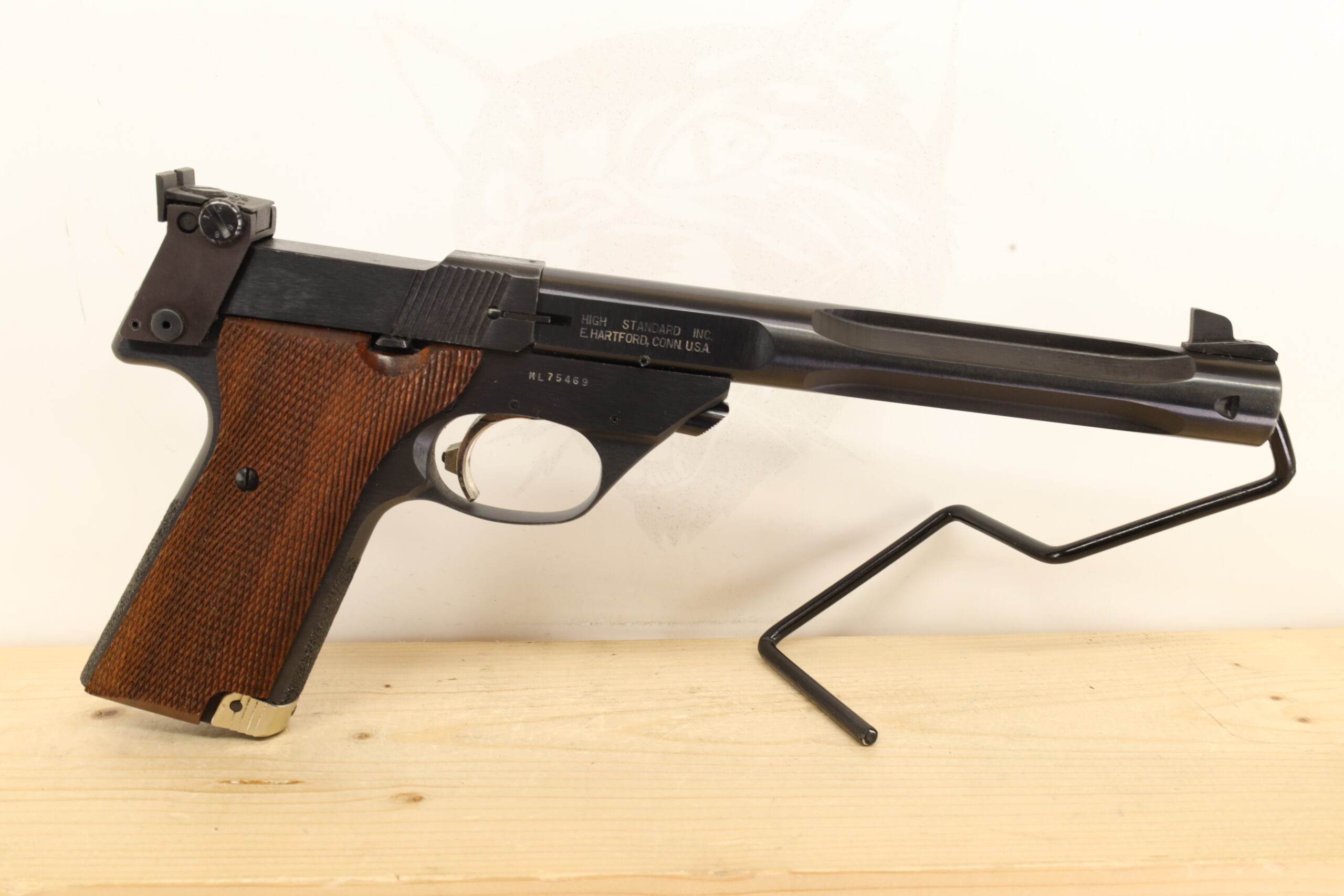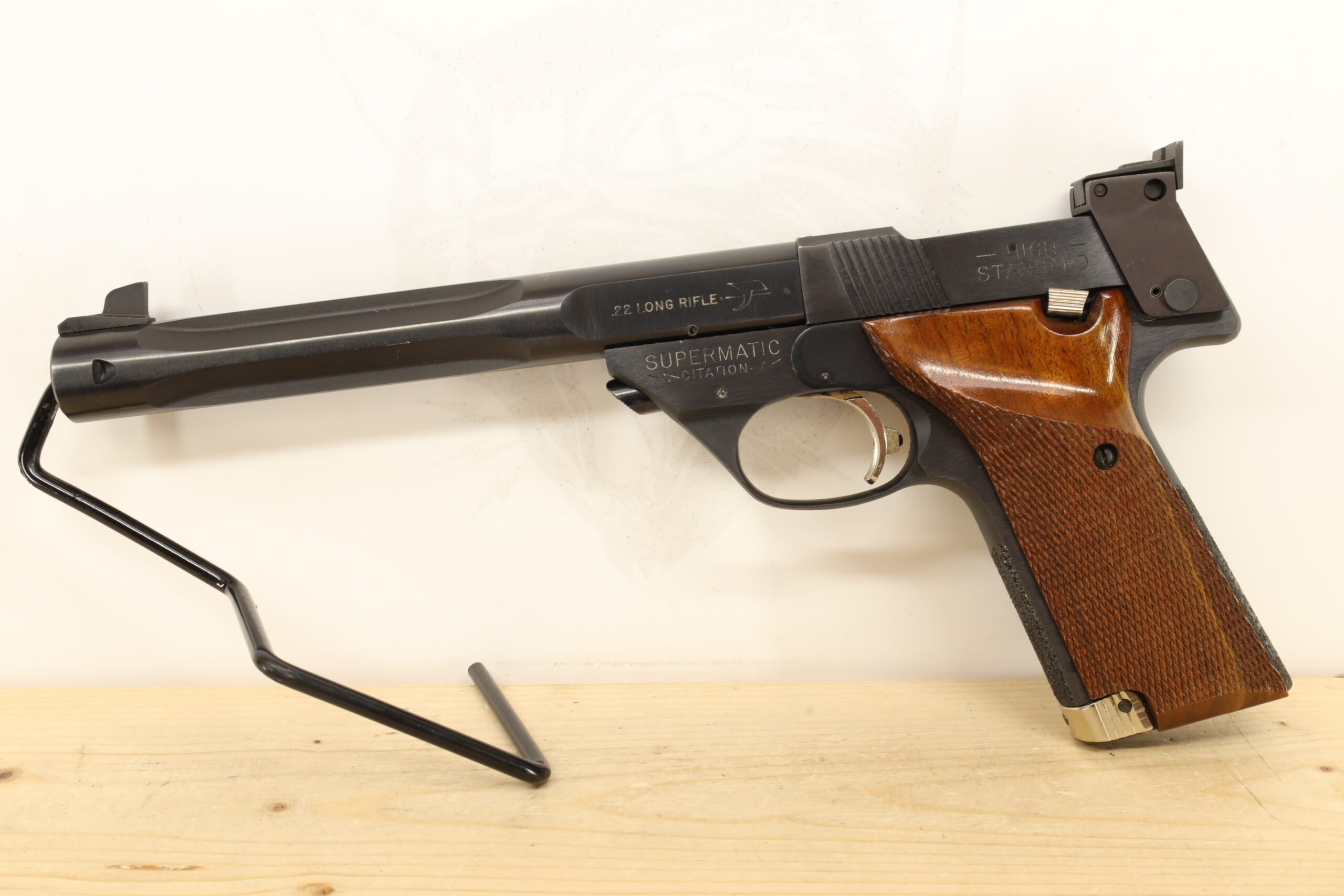 The HIGH STANDARD Supermatic Citation in 22 LR is a well-respected competitive target handgun. Boasting an impressive 7.2″ barrel, it provides a high level of precision for its users. The thumb safety is added to ensure a secure handling experience. This particular model comes used in great condition with one magazine and its original box or bag.