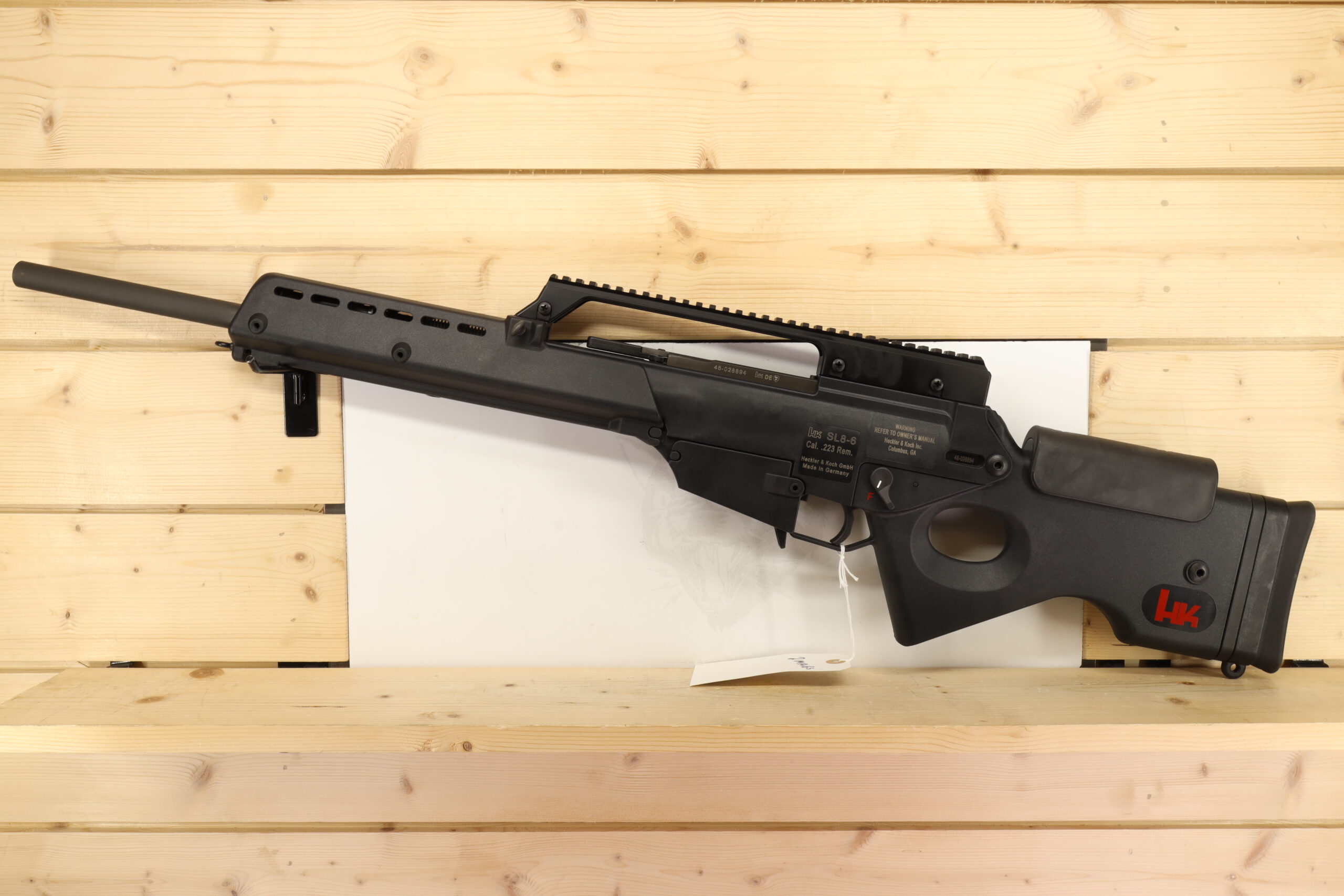 The Heckler & Koch SL8-6 is a civilian semi-automatic rifle based on the G36, chambered in .223 Remington. It features a 20″ barrel and thumb safety, with 2 magazines included. Despite its lack of original packaging, this rifle maintains a strong reputation for its accuracy and reliability.