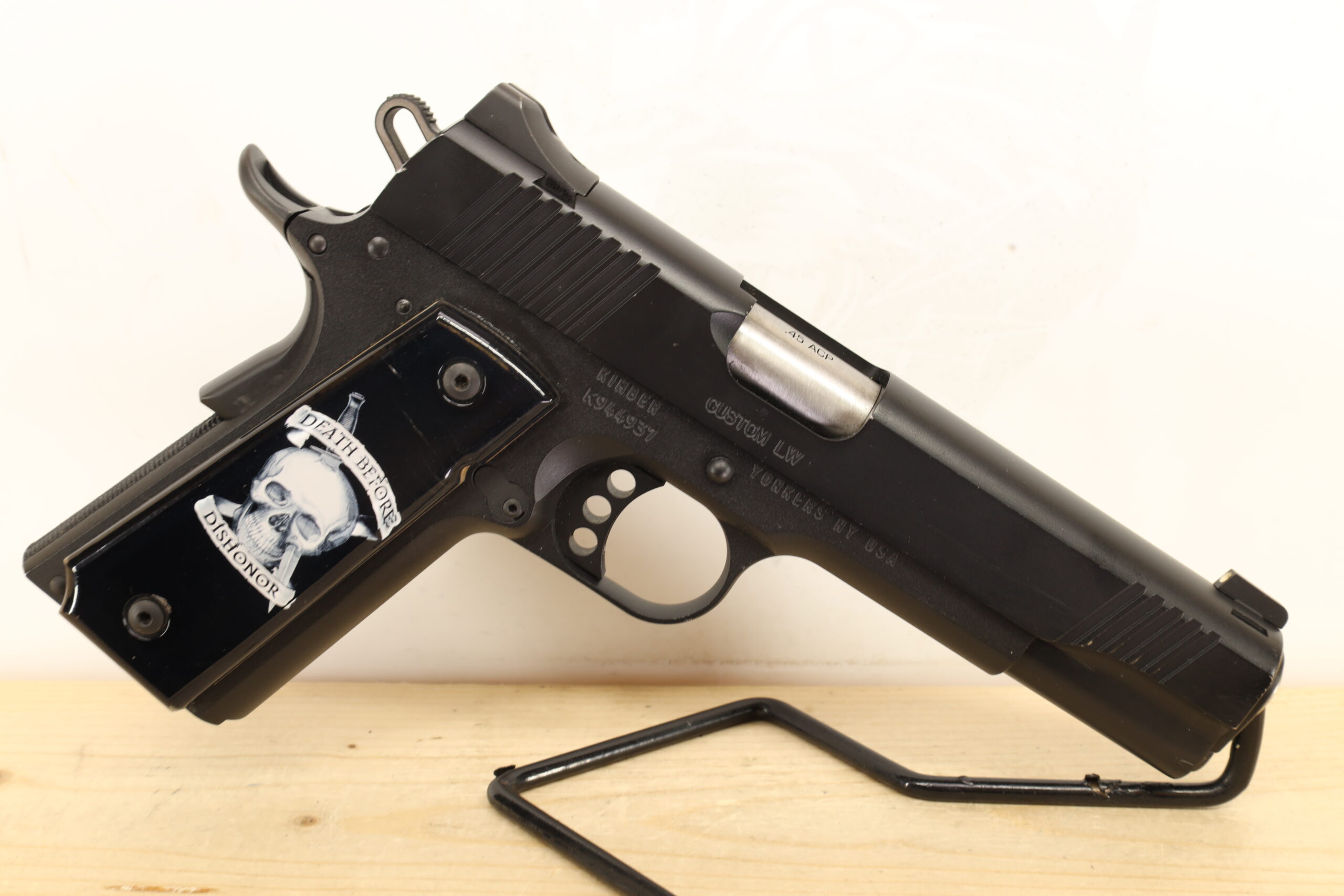 The Kimber Custom LW 1911 is a classic .45 ACP handgun with a 5″ barrel that embodies American firearm history. Despite being used, it is well-preserved and operates optimally with grip and thumb safeties. It comes with a single magazine and a holster, all securely packed in a case for easy transportation and storage.