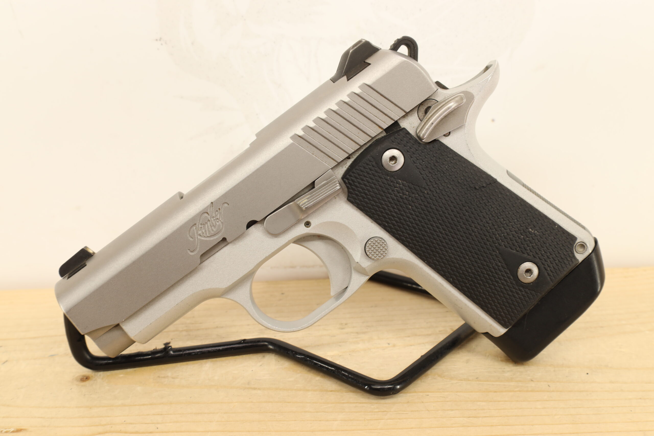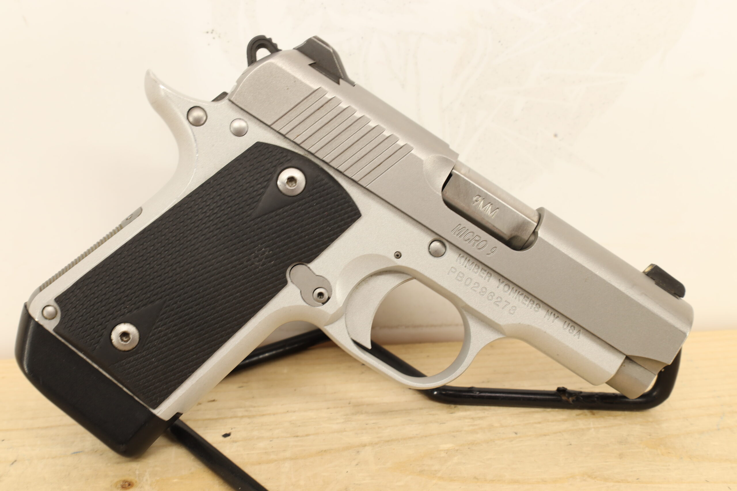 Made by the distinguished manufacturer Kimber, the “Micro 9″ is a compact 9x19mm firearm known for its precision and craftsmanship. It’s beautifully maintained with a 3.1″ barrel and thumb safety feature. The firearm comes with one magazine and is usually accompanied by either a box or a bag upon purchase.