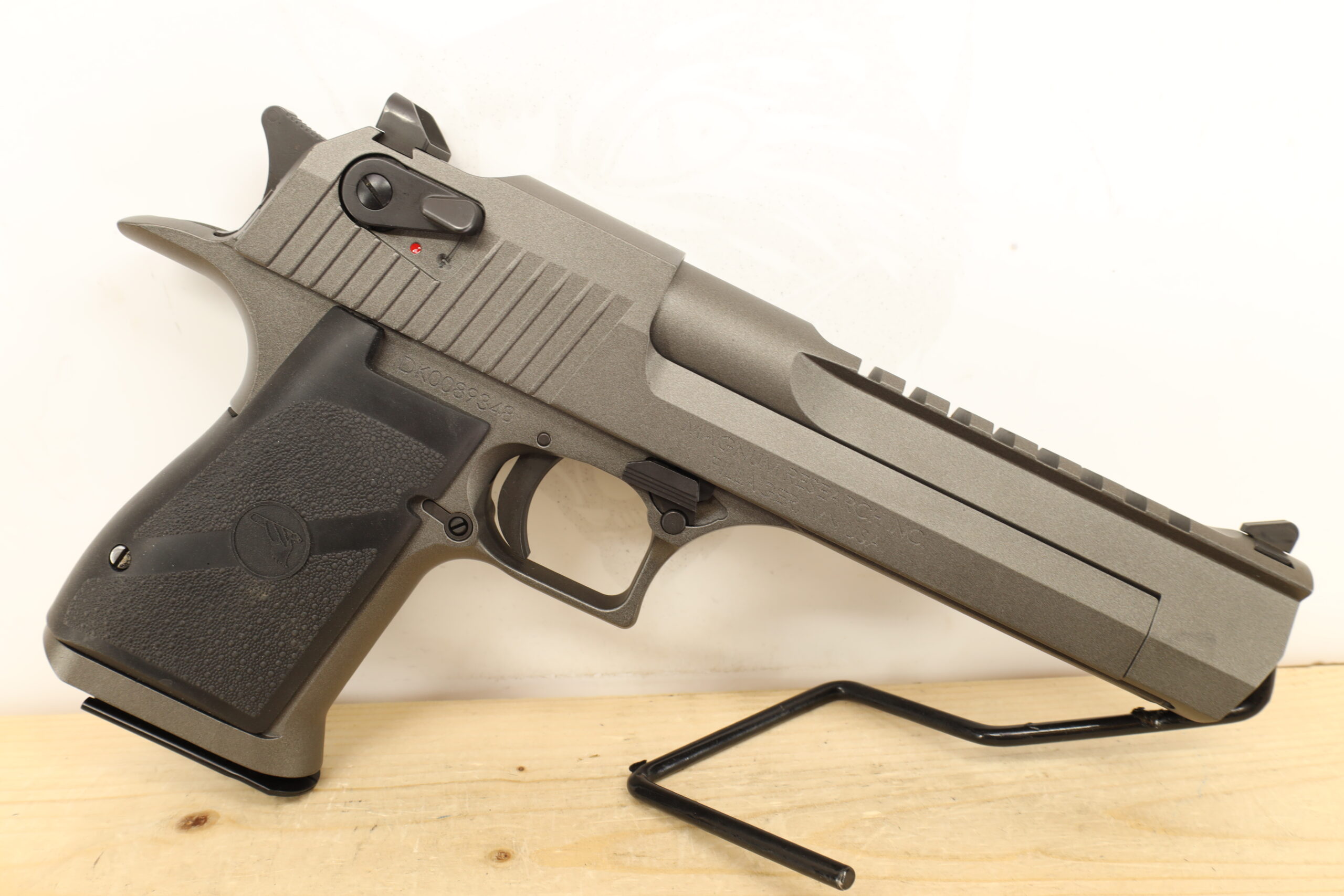 The Magnum Research Desert Eagle in .50AE is an emblematic handgun famous for its sheer stopping power. This used model keeps its allure with its excellent condition. Its 6″ barrel aides in accuracy while the thumb safety provides added peace-of-end. It comes with two magazines and the original box or bag.