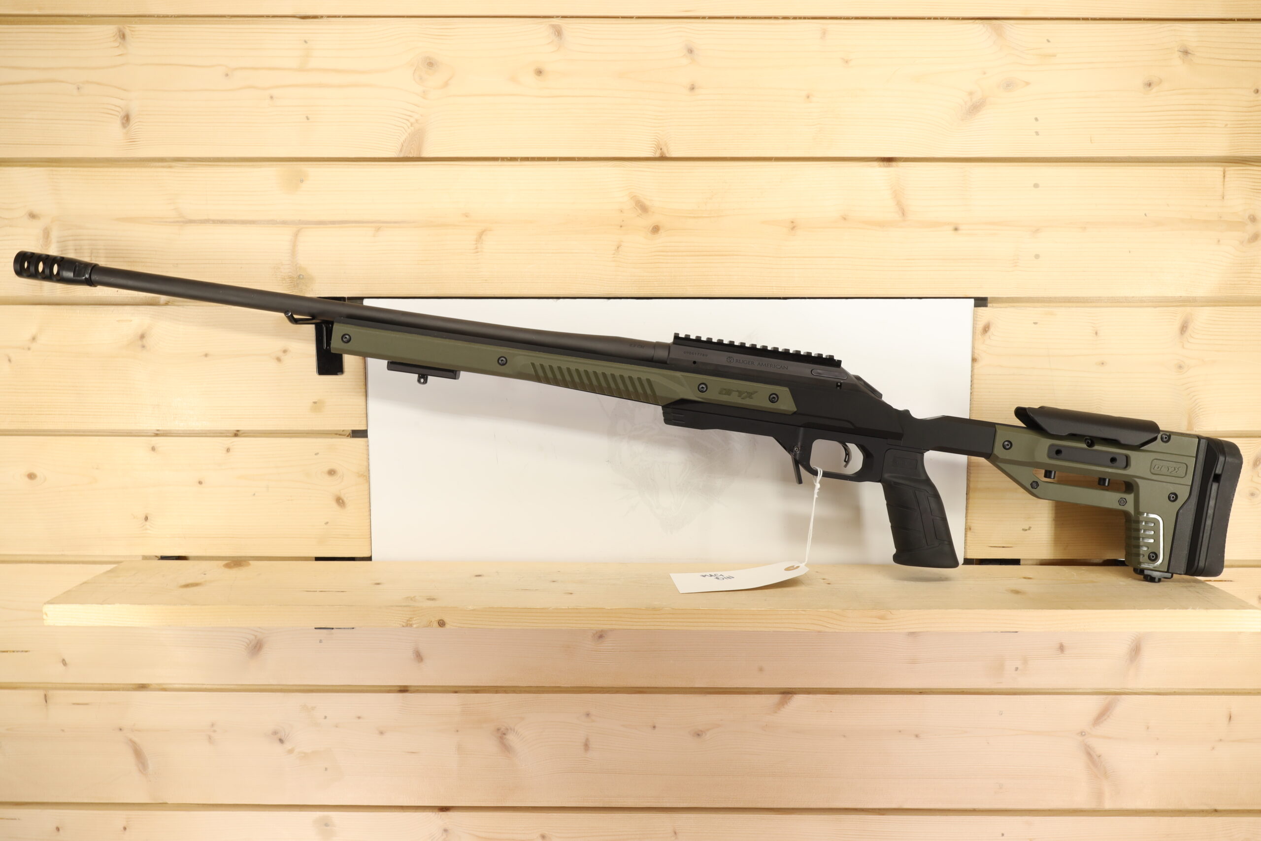 The RUGER American chambered in 6.5CM features a 22″ threaded barrel and a thumb safety. Designed to deliver both reliable performance and accuracy, this firearm doesn’t include a magazine or a box, underscoring its robust, field-ready character.