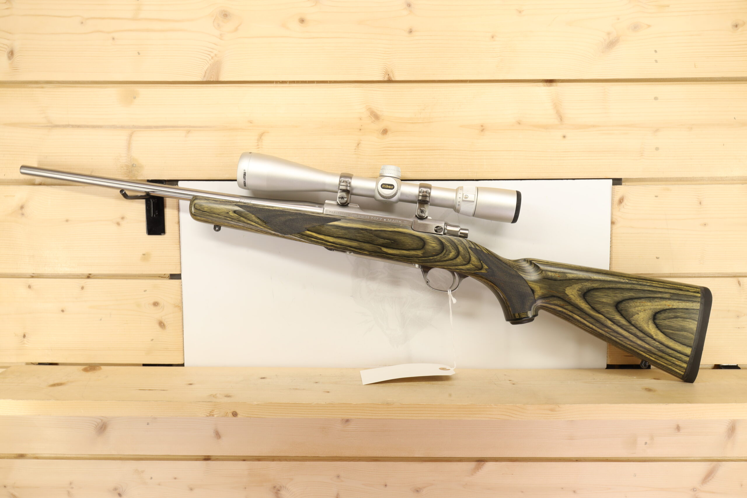 The Ruger M77 Mark II 223REM is a reliable bolt-action rifle recognized for its accuracy. Manufactured by Ruger, famed for their vast range of firearms, this .223REM calibre model comes with a 16.5″ barrel. The included Nikon Buckmasters 4.5-14X scope enhances precision, while the thumb safety adds an extra layer of safety. The firearm is used but in great condition.