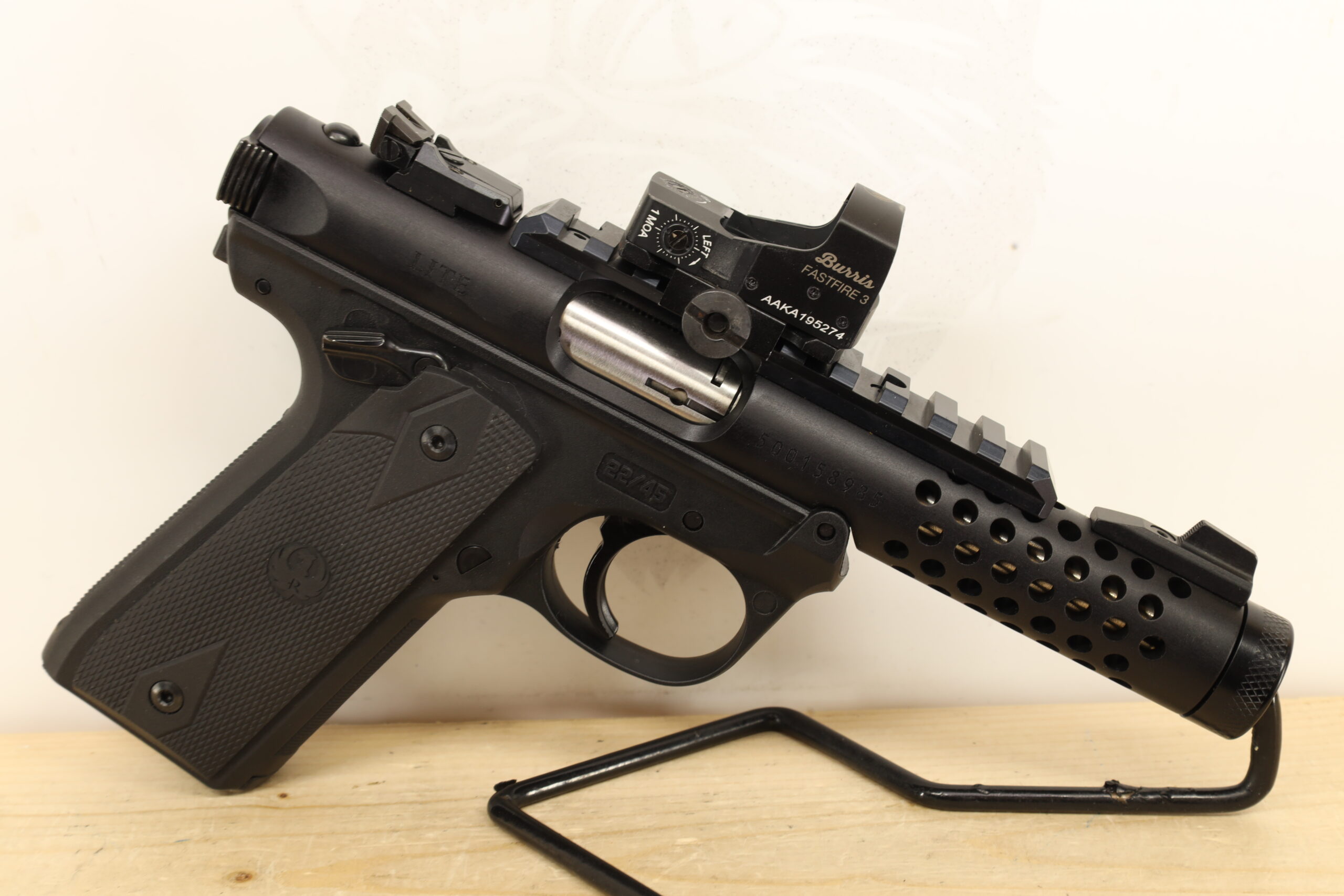 The Ruger Mark IV 22/45 Lite, chambered in 22LR, is a widely recognized and cherished model. Sporting a 4.25″ threaded barrel and fitted with a Burris FastFire3 optic, it’s ready to deliver precision. A great condition, used firearm, this Ruger comes with a thumb safety and two magazines, enhancing its usability.