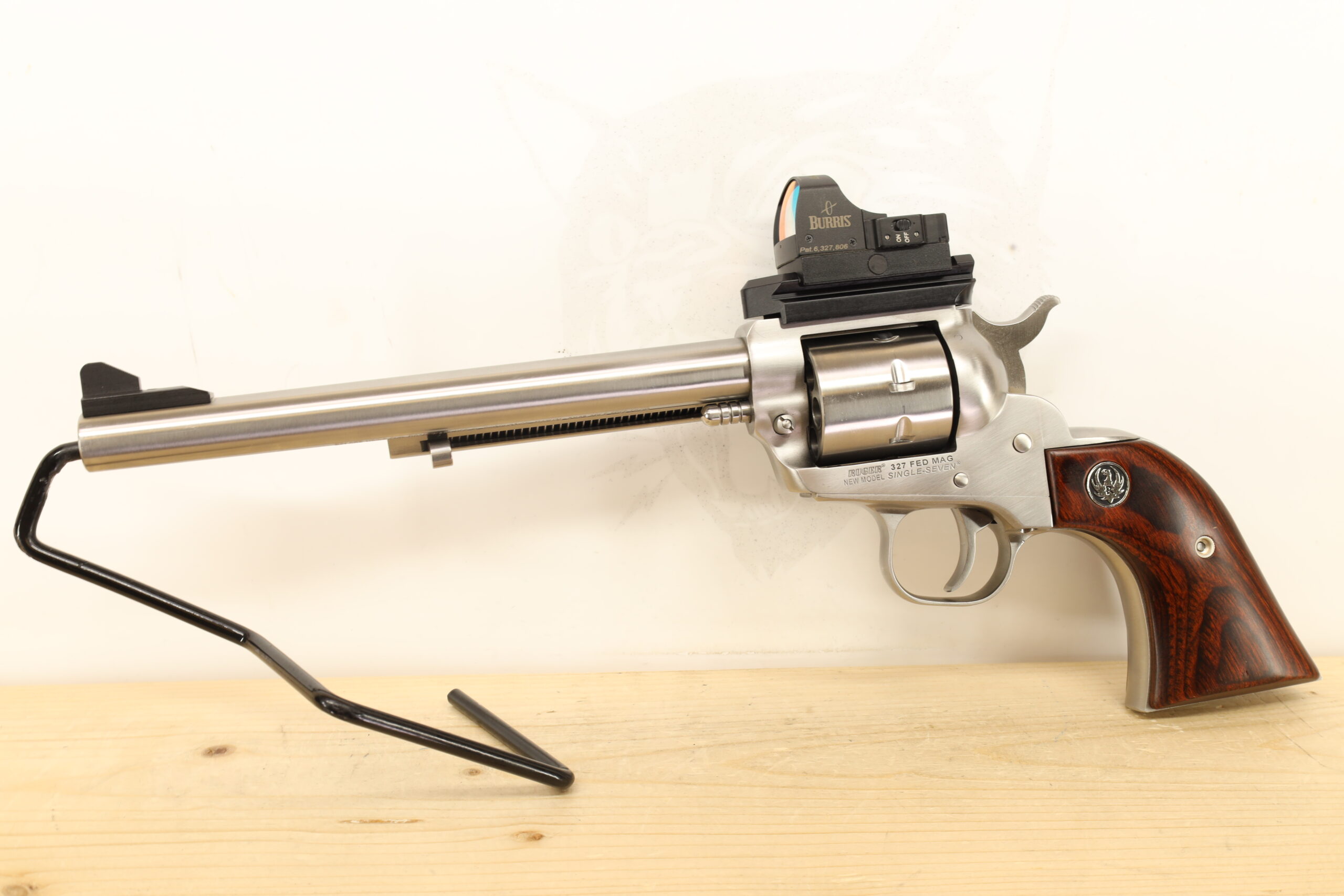 The Ruger Single-Seven in 327 Federal Magnum, used but in excellent condition, is a reliable revolver known for its durability and versatility. It features a 7.5″ barrel and a 7-shot cylinder allowing for rapid firing. The added BURRIS REDDOT optic offers increased aiming precision. The Single-Seven is an embodiment of Ruger’s tradition of innovation and robust design.