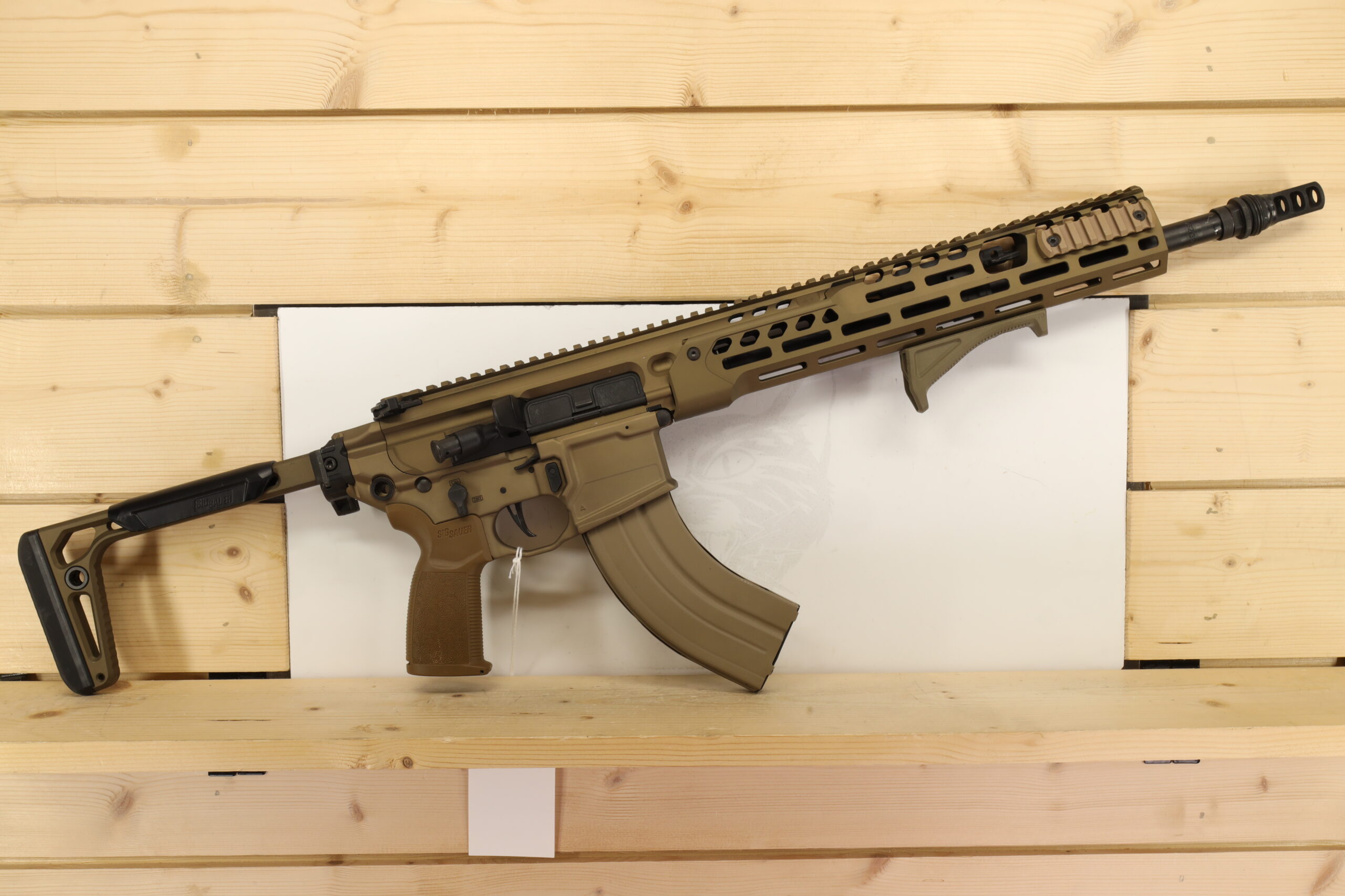 The SIG SAUER MCX Spear LT in 7.62X39MM is a high-performance rifle featuring a 16″ threaded barrel. Its thumb safety makes it secure during operation. As one of SIG SAUER’s reliable models, it can be expected to perform well under various conditions.