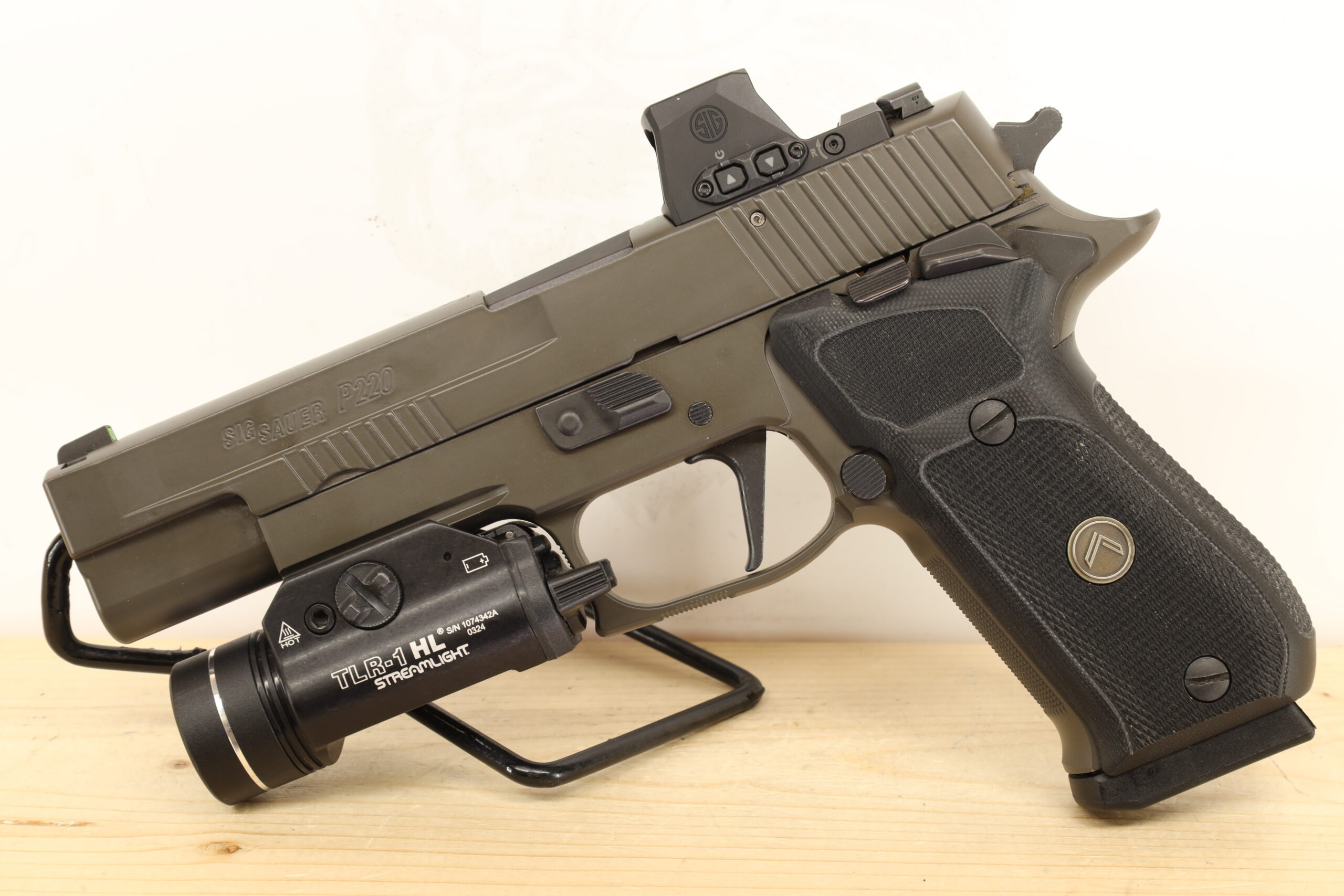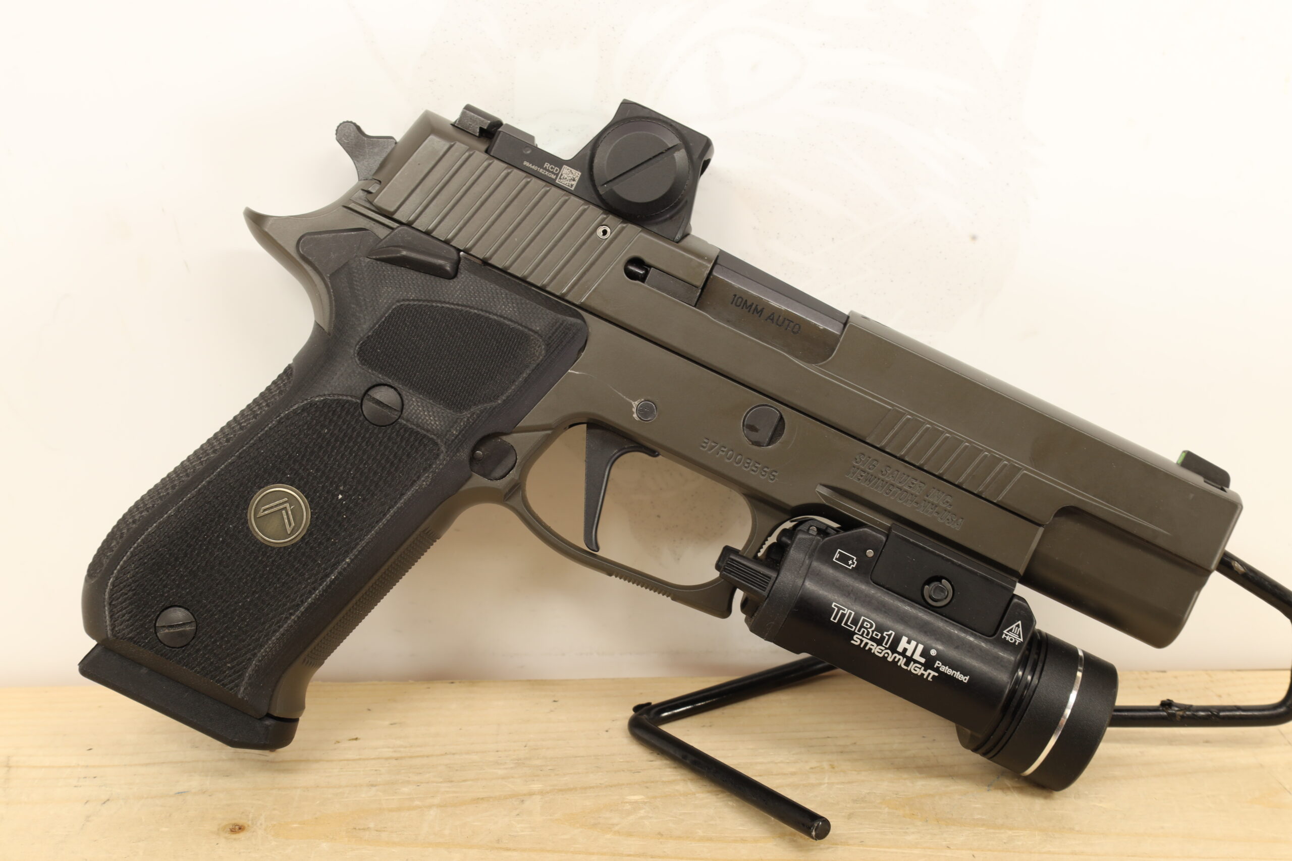 SIG SAUER’s P220 Legion 10MM is a powerful semi-automatic handgun that blends legendary P220 performance with the exclusive Legion-series enhancements. In great used condition, it features a 5″ barrel along with thumb safety and proprietary SIG REDDOT Optic. Despite being used, its superior quality shines apparent as it comes with a light, one magazine, and its original packaging.