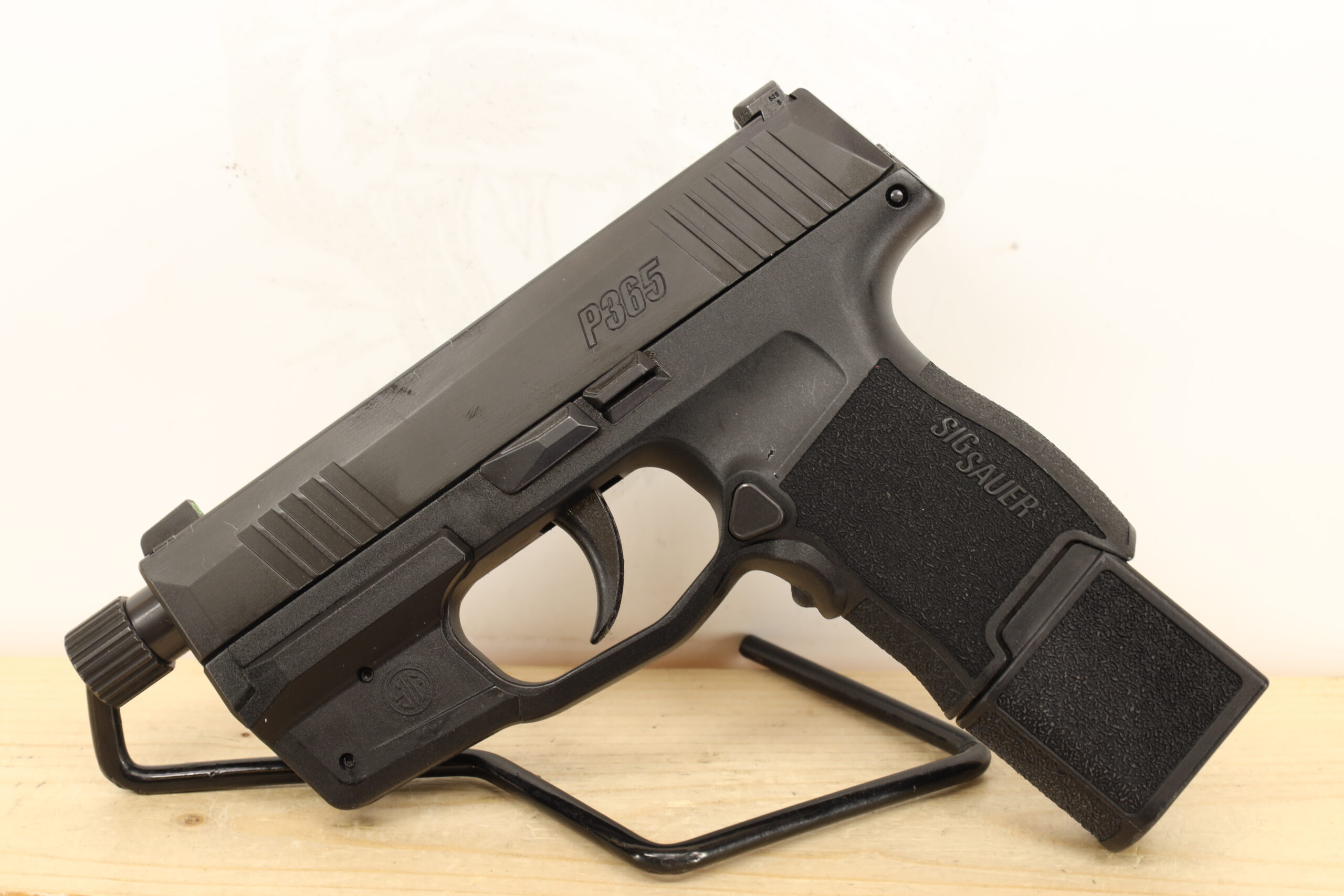 The SIG SAUER P365 is a compact 9x19mm firearm, well-regarded for its flexibility and reliability. This used firearm also includes a 3.75″ threaded barrel and is in superb condition. Unique features of this model include a laser and comes with three magazines. A case is also included for secure storage.