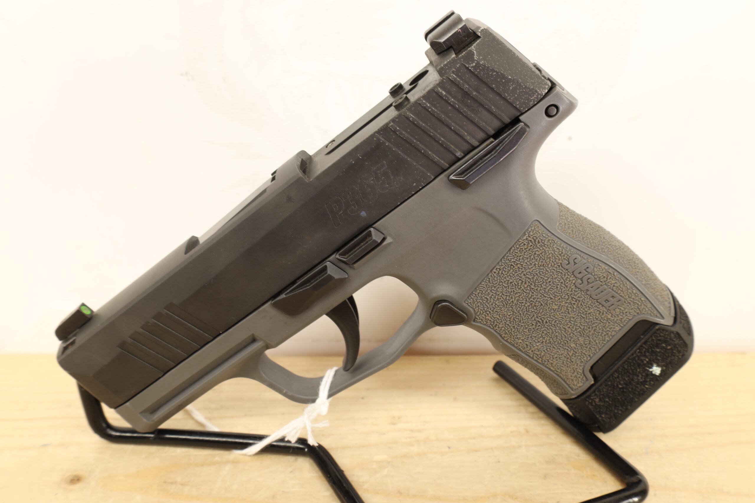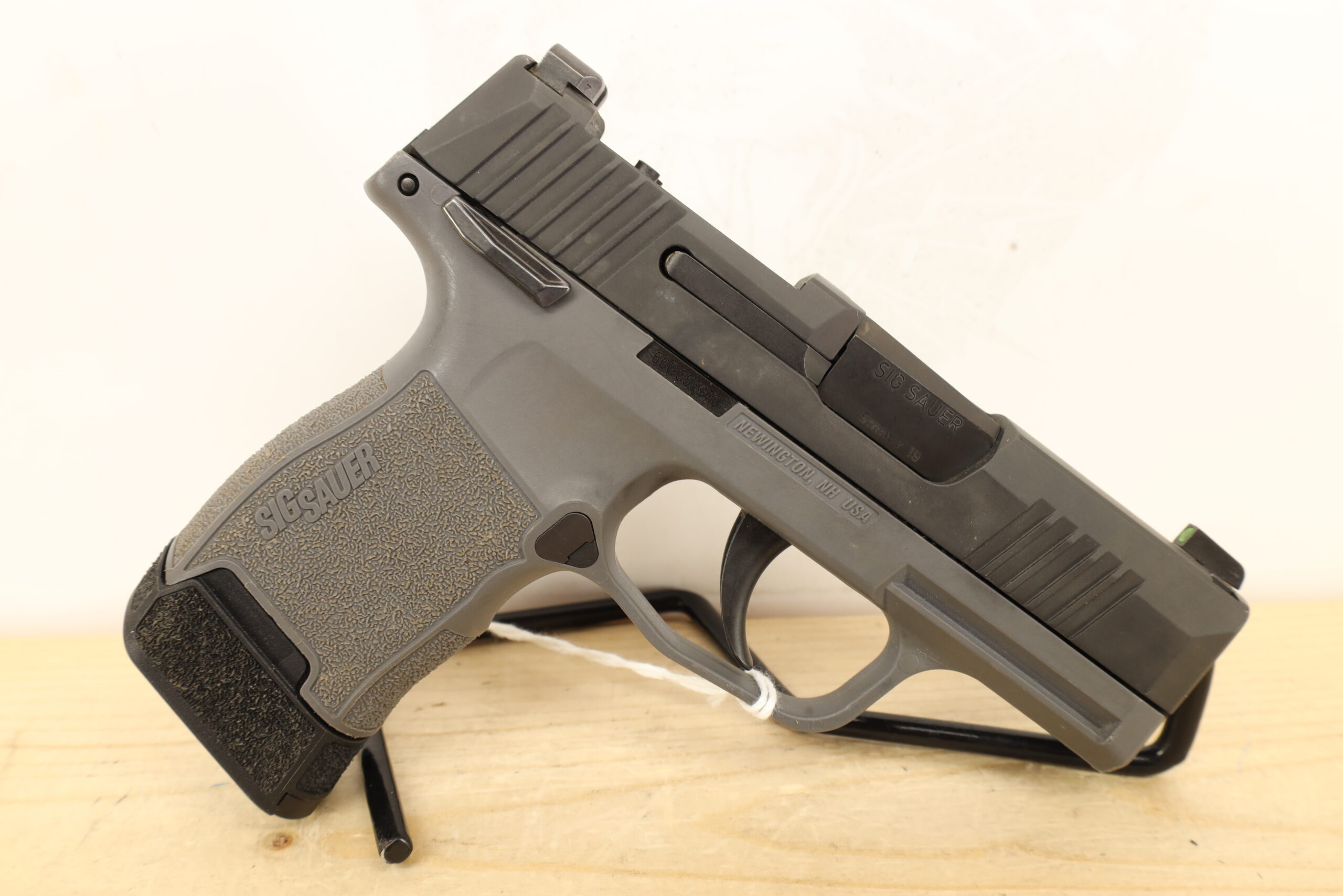 The SIG SAUER P365, chambered in 9x19mm and fitted with a 3-inch barrel, brings compact size and high capacity together in an innovative design. This model comes optic ready for enhanced sighting systems and also includes a thumb safety and a magazine. Offered with a case, this P365 is in great condition, reflecting SIG SAUER’s recurring theme of unmatched performance and quality.