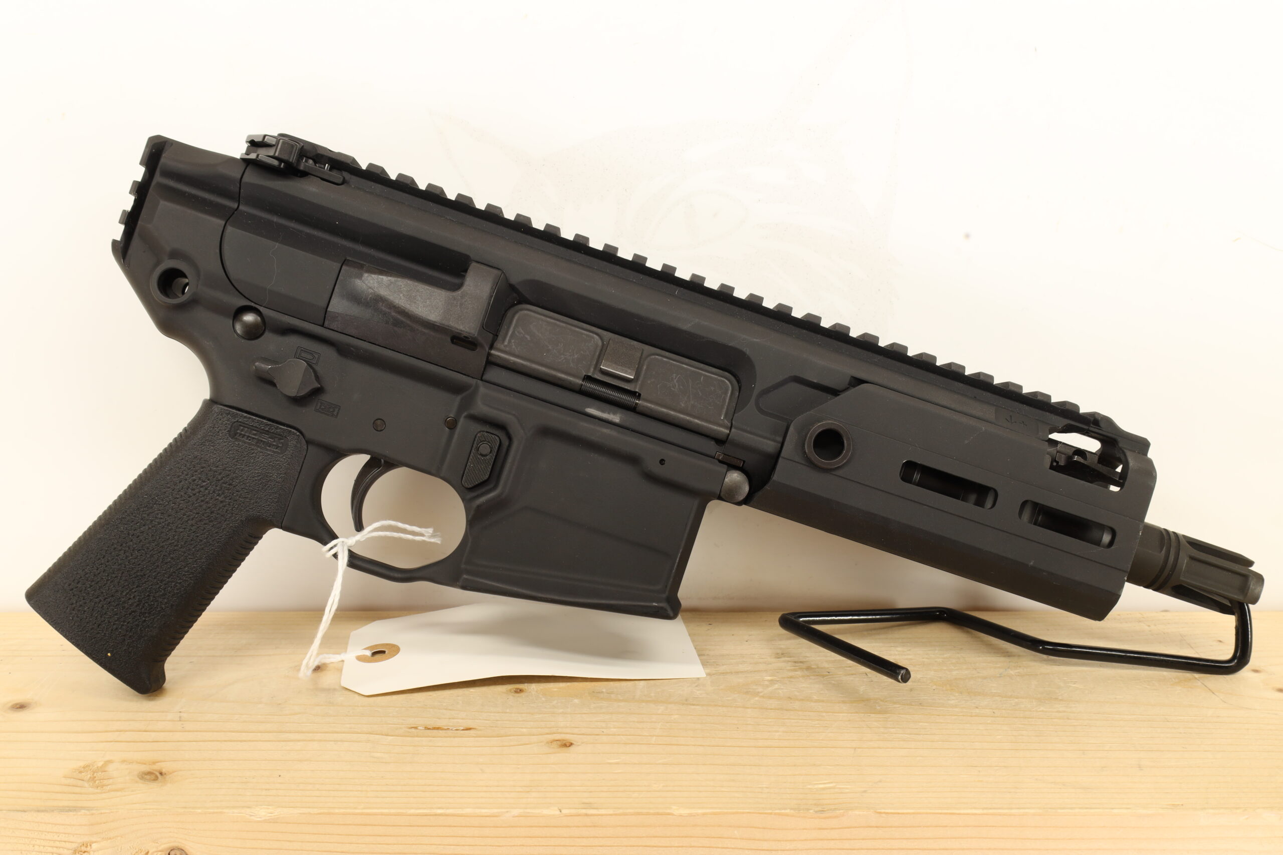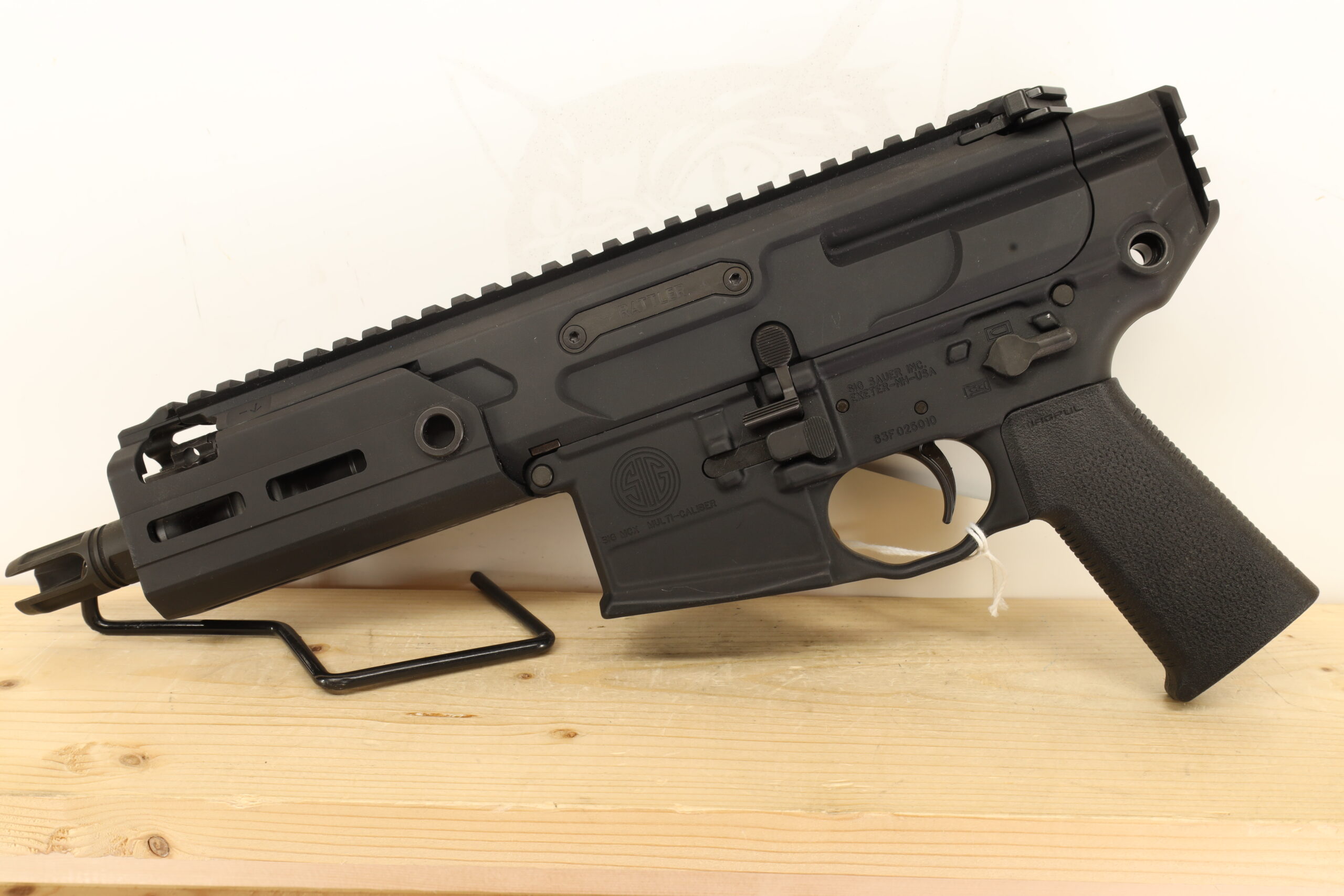 The SIG SAUER RATTLER 300BLK, one of Sig Sauer’s standout firearms, specializes in a compact and easy-to-handle design. It is equipped with a 6″ threaded barrel and thumb safety, providing an impressive balance of power and size. Note though, the firearm comes without a magazine and the original box.