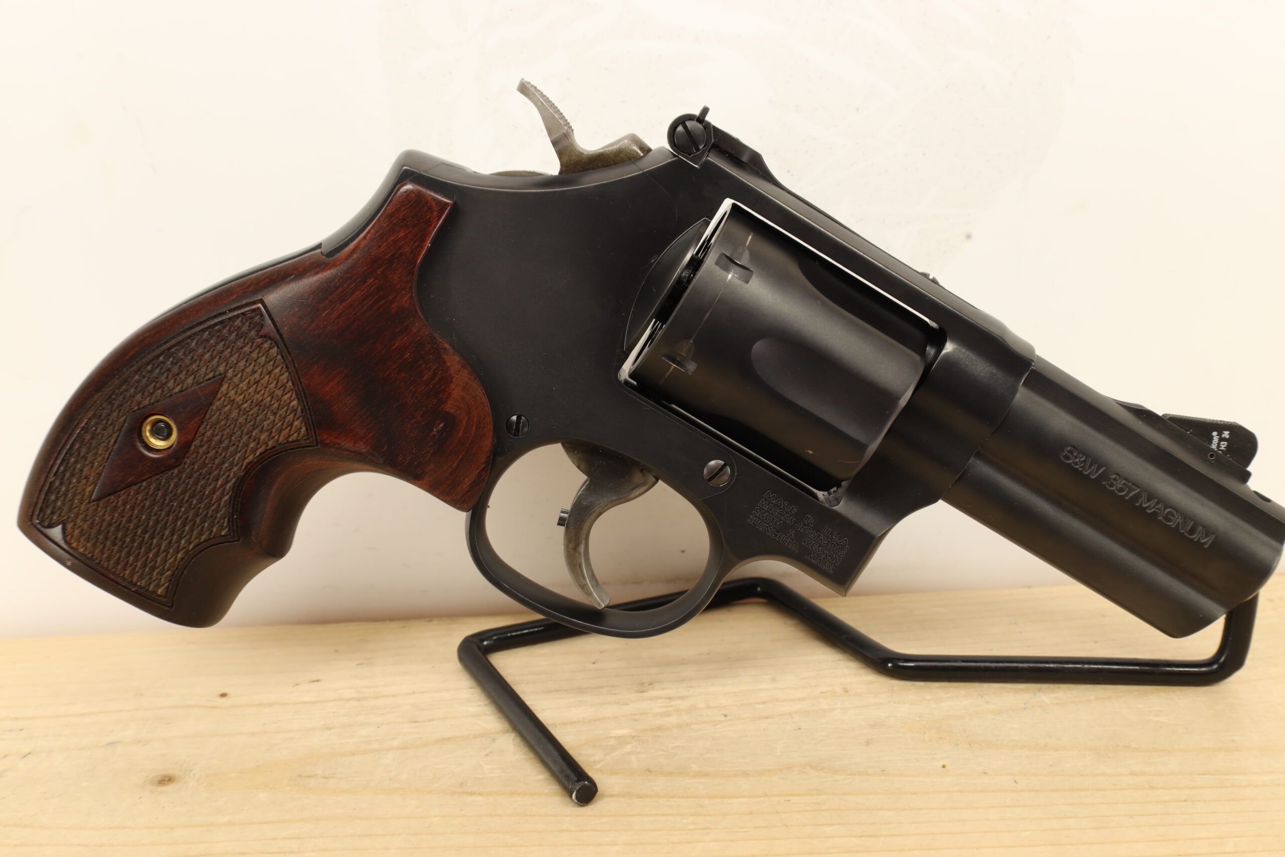 The classic “combat magnum,” the Smith & Wesson 19-5, chambered in .357 magnum, is a used revolver in great condition. The 3″ barrel and 6 shot capacity make for a compact yet powerful tool, exemplifying Smith & Wesson’s long-standing tradition of excellence in revolver manufacturing.