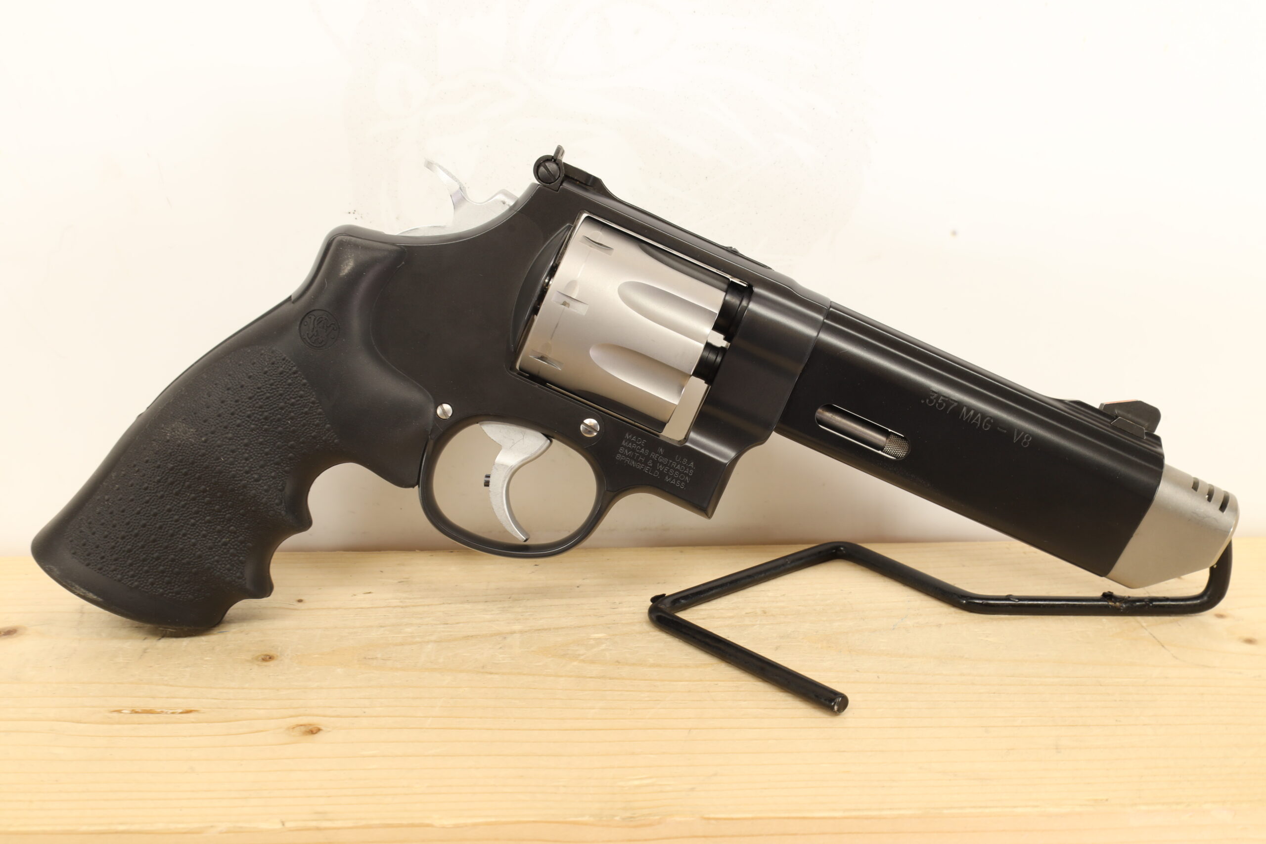 The S&W 627-5 is a standout from Smith & Wesson’s revolver series. Marked by its robustness, accuracy, and reliable performance, this 357MAG weapon features a 4.6″ barrel and an impressively expanded capacity of 8 rounds. The firearm is accompanied by a box or bag as well.