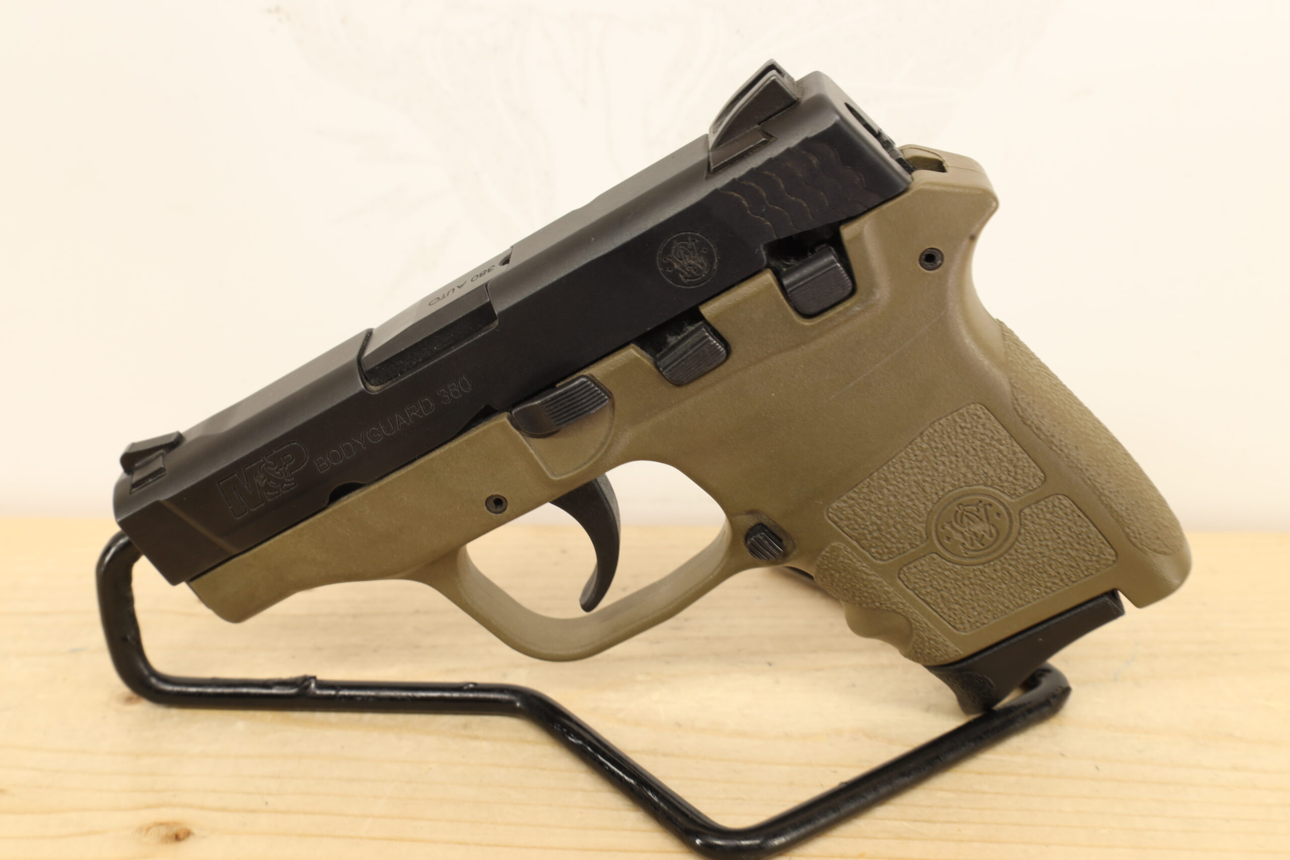 The Smith & Wesson M&P Bodyguard 380, chambered in 380 ACP, is a lightweight, compact pistol designed for concealed carry and personal defense. It has a 2.7″ barrel and an integrated thumb safety for secure handling. This model comes with one magazine and lacks the original box.