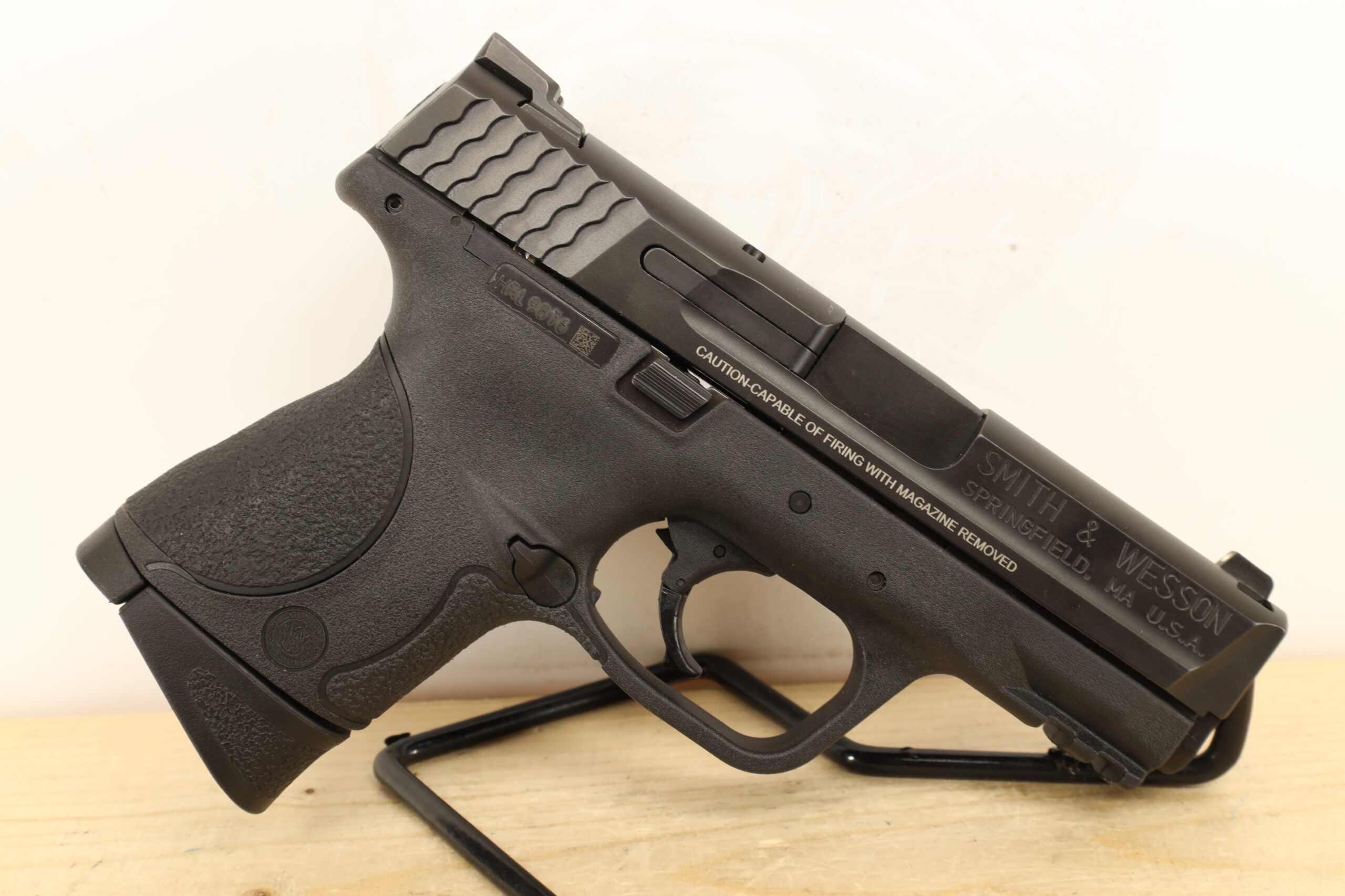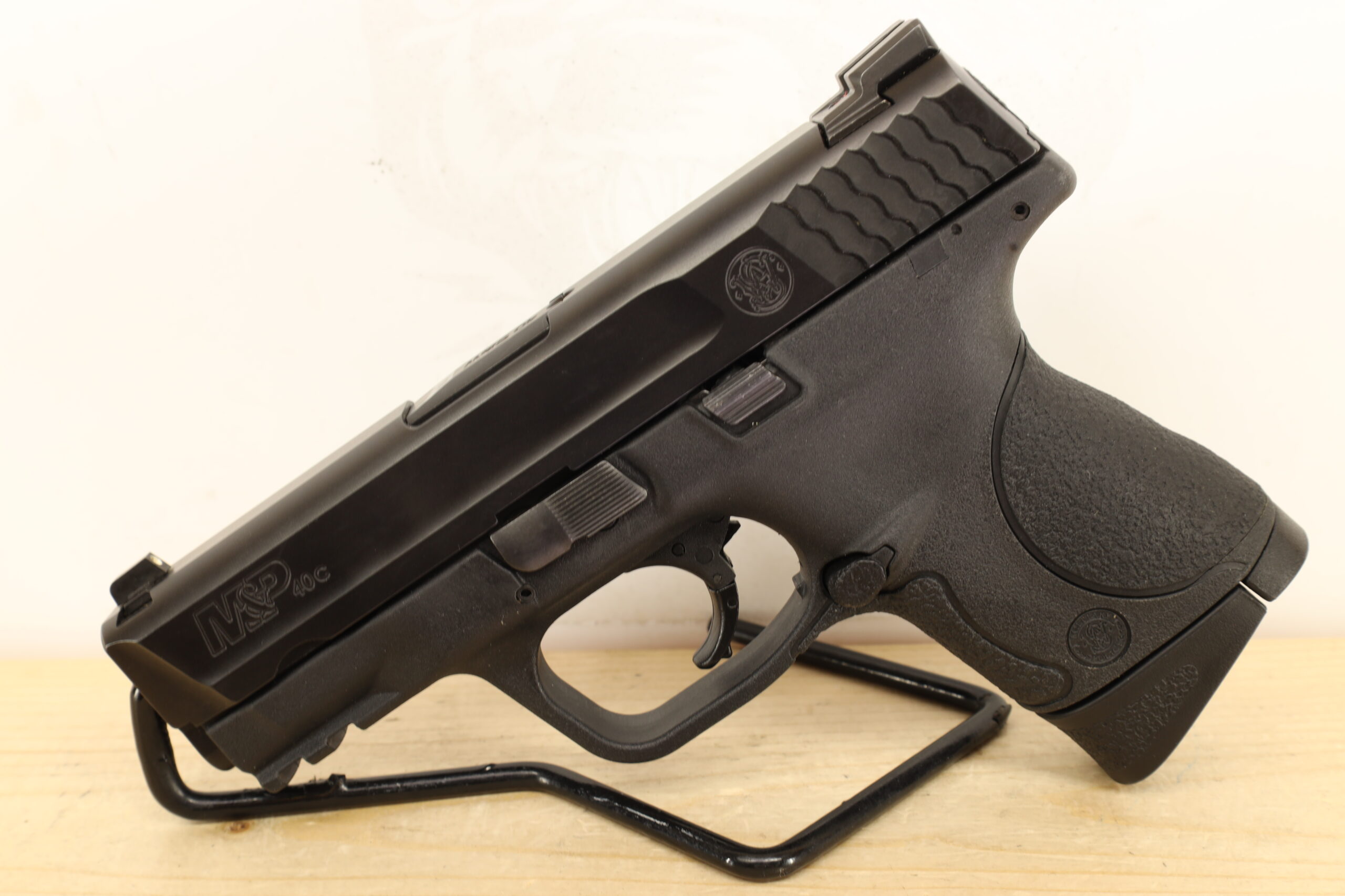 The used Smith & Wesson M&P40c is a compact handgun in great condition. Chambered in 40S&W, this firearm boasts a 3.5″ barrel and comes with three magazines. It carries its original case for transportation and storage.