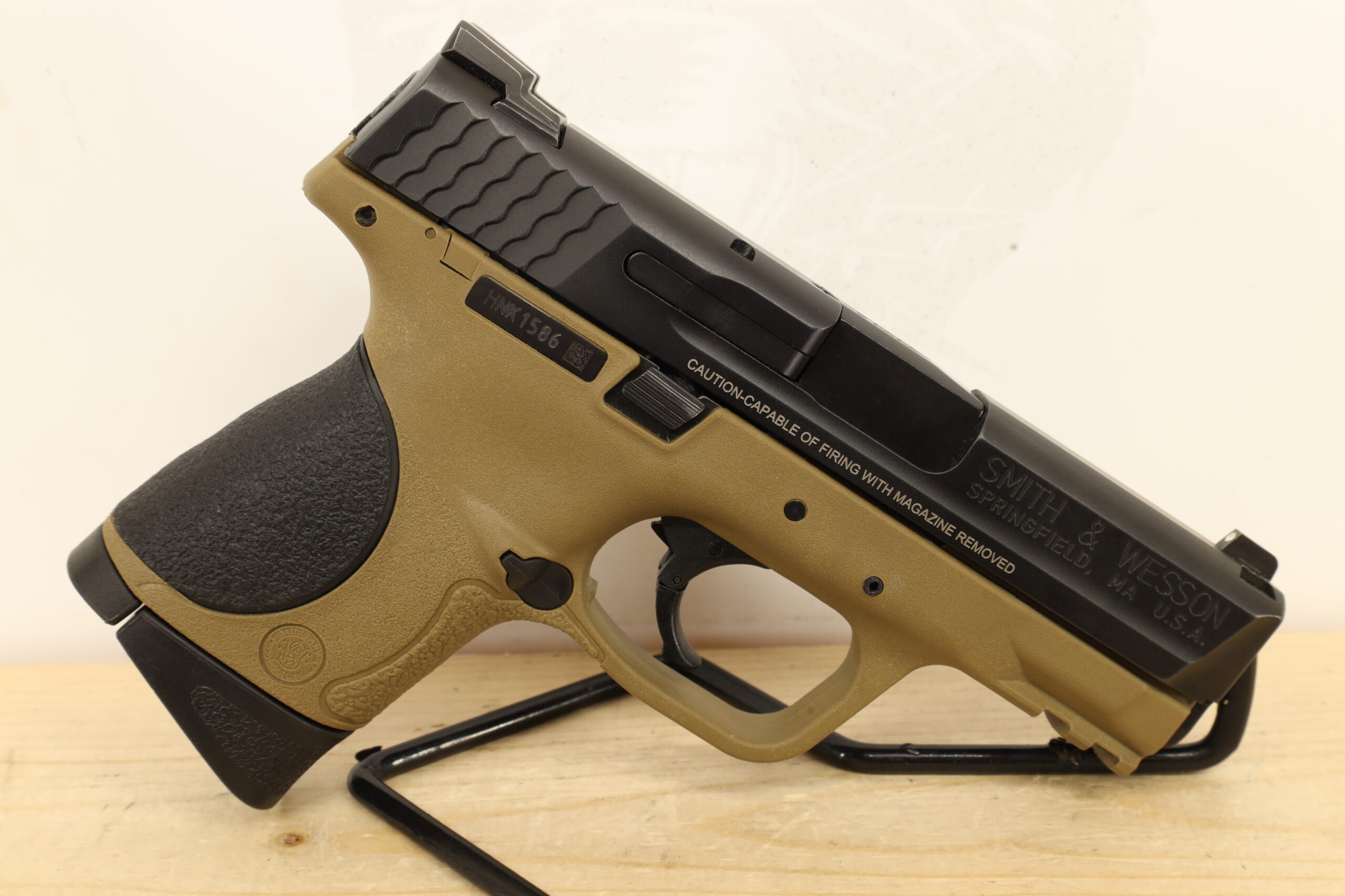The Smith and Wesson M&P9c is a 9x19mm compact pistol renowned for its performance and reliability. It features a 3.5-inch barrel and comes with two magazines. As a member of S&W’s Military and Police line, it is designed to perform in a variety of environments while maintaining a great condition.