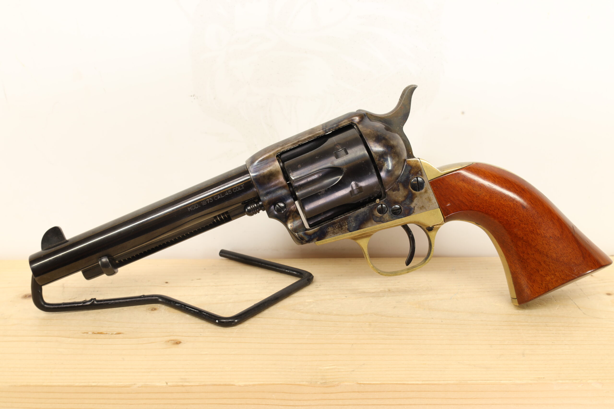 The Uberti 1873, chambered in the classic 45 Long Colt, pays homage to the spirit of the Old West with its traditional six-shoot design and mid-sized 5.4″ barrel. Though it doesn’t come with the original box, this revolver is in great condition and perfect for those seeking a slice of history.