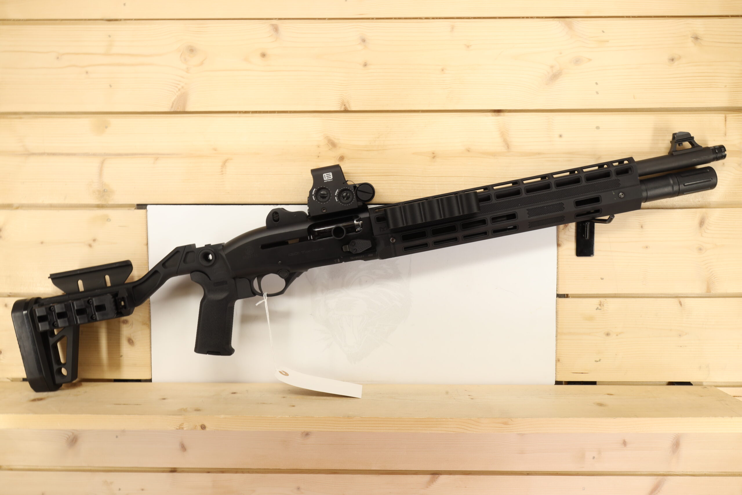 The Beretta 1301 Tactical 12 GA offers well-rounded functionality in a compact and ergonomically designed form. Among its features are an 18″ barrel and a choke system that enhances its versatility for varied shooting requirements. This unit adds an optical advantage, as it comes with an EOTECH Red Dot sight. Its thumb safety feature underscores Beretta’s consistent concern for the user’s welfare.