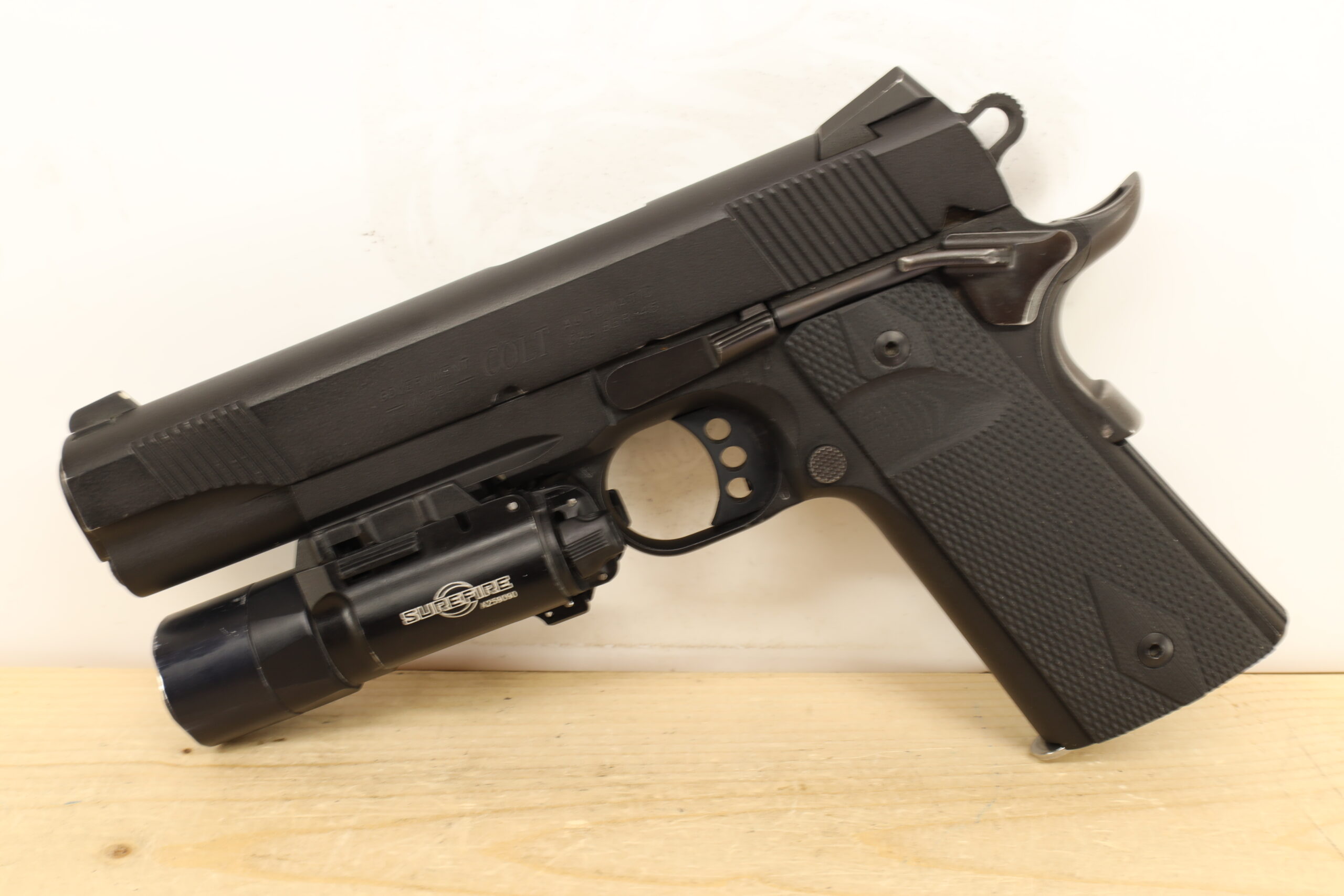 The Colt Government Model in .45 ACP reflects excellent craftsmanship and a long-standing history of reliability. Featuring a 5″ barrel, grip safety, and a thumb safety, it also includes a light and four magazines. Given its great condition, it’s ready to demonstrate Colt’s legendary performance.