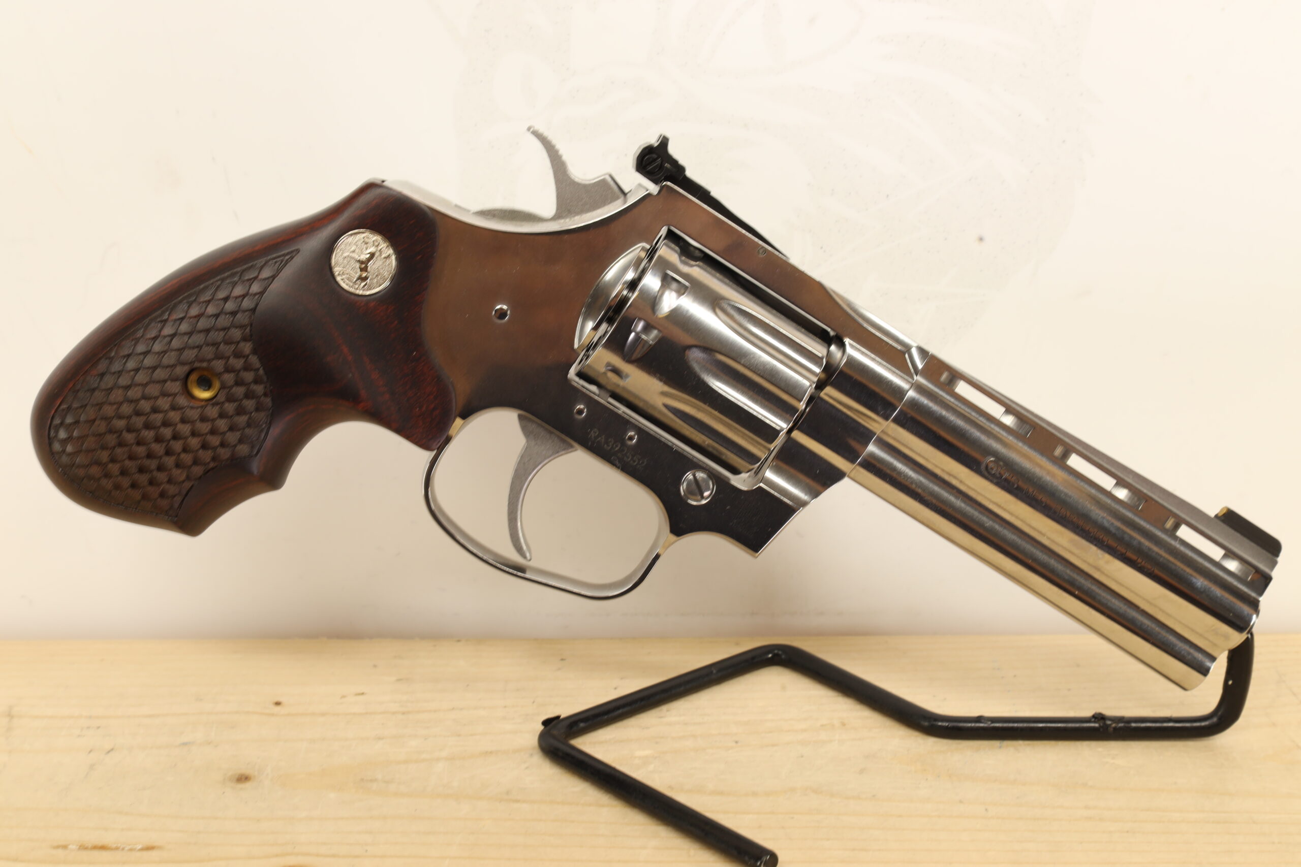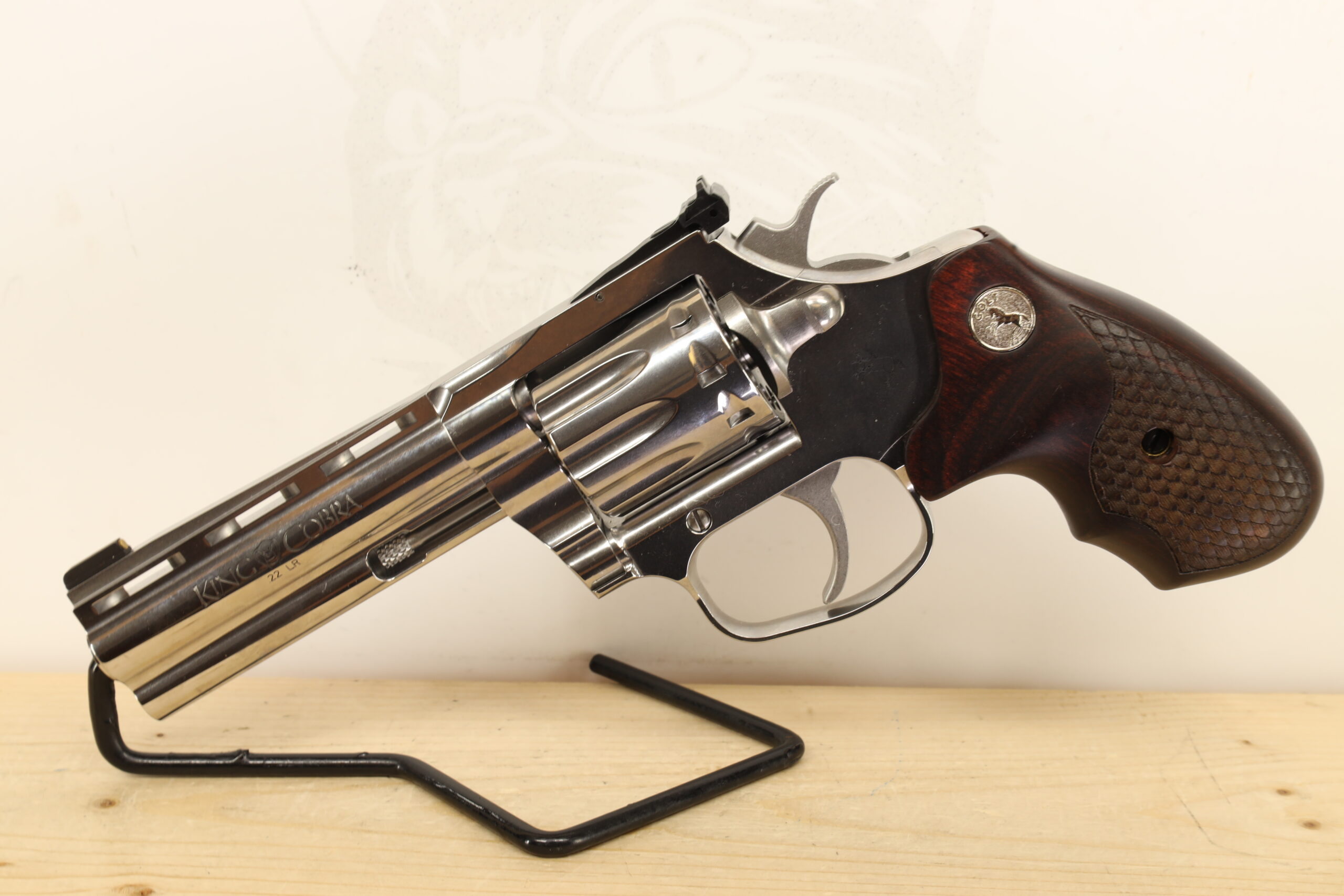 The Colt King Cobra, chambered in .22 LR, retains the legacy of the legendary Colt manufacturer. Sporting a 4.2-inch barrel and a 10 shot capacity, it is an excellent choice for recreational shooting. Its high grade condition speaks volumes of the firearm’s durability and the owner’s maintainance.