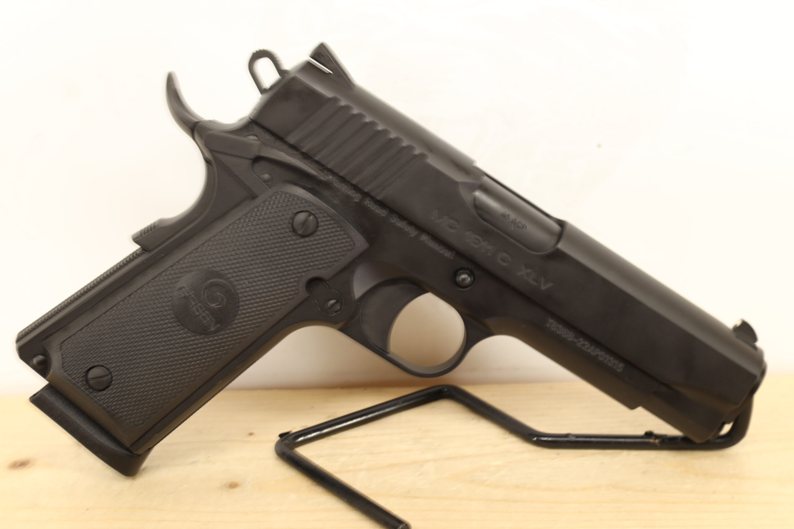 Girsan’s MC 1911 C XLV 45 ACP, a used firearm in top-notch condition, has a 4.2″ barrel, grip safety, and thumb safety. An echo of the renowned 1911 design, this Turkish firearm adds a dash of refinement and robustness to an already well-respected line of handguns.