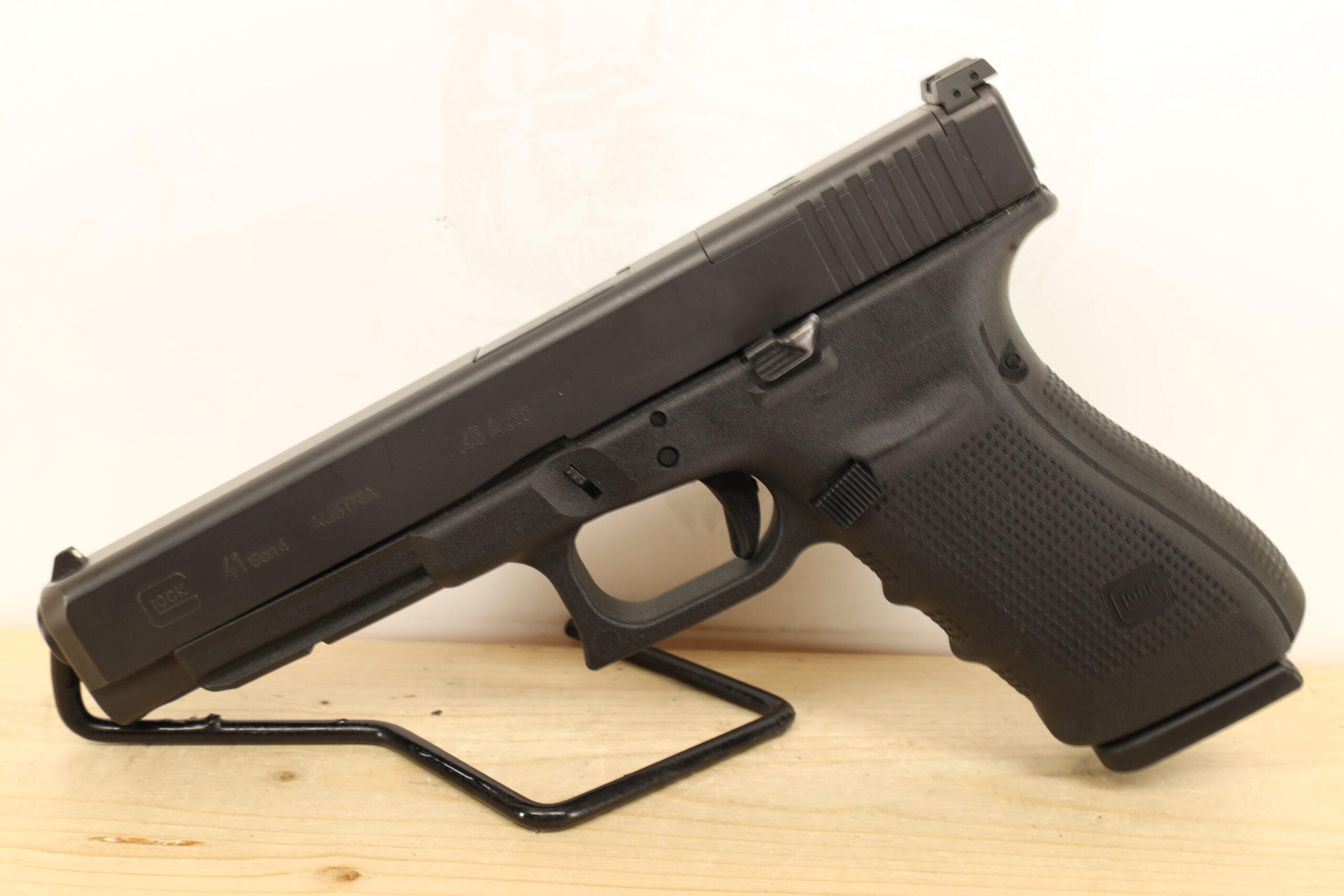 TheGlock 41 Gen 4 is a .45ACP caliber firearm, known for its durability and excellent performance. Its 5.25″ barrel and readiness for optics make it a versatile choice. This model comes with three magazines and either a box or bag, symbolizing the world-renowned Glock’s commitment to user convenience and satisfaction.