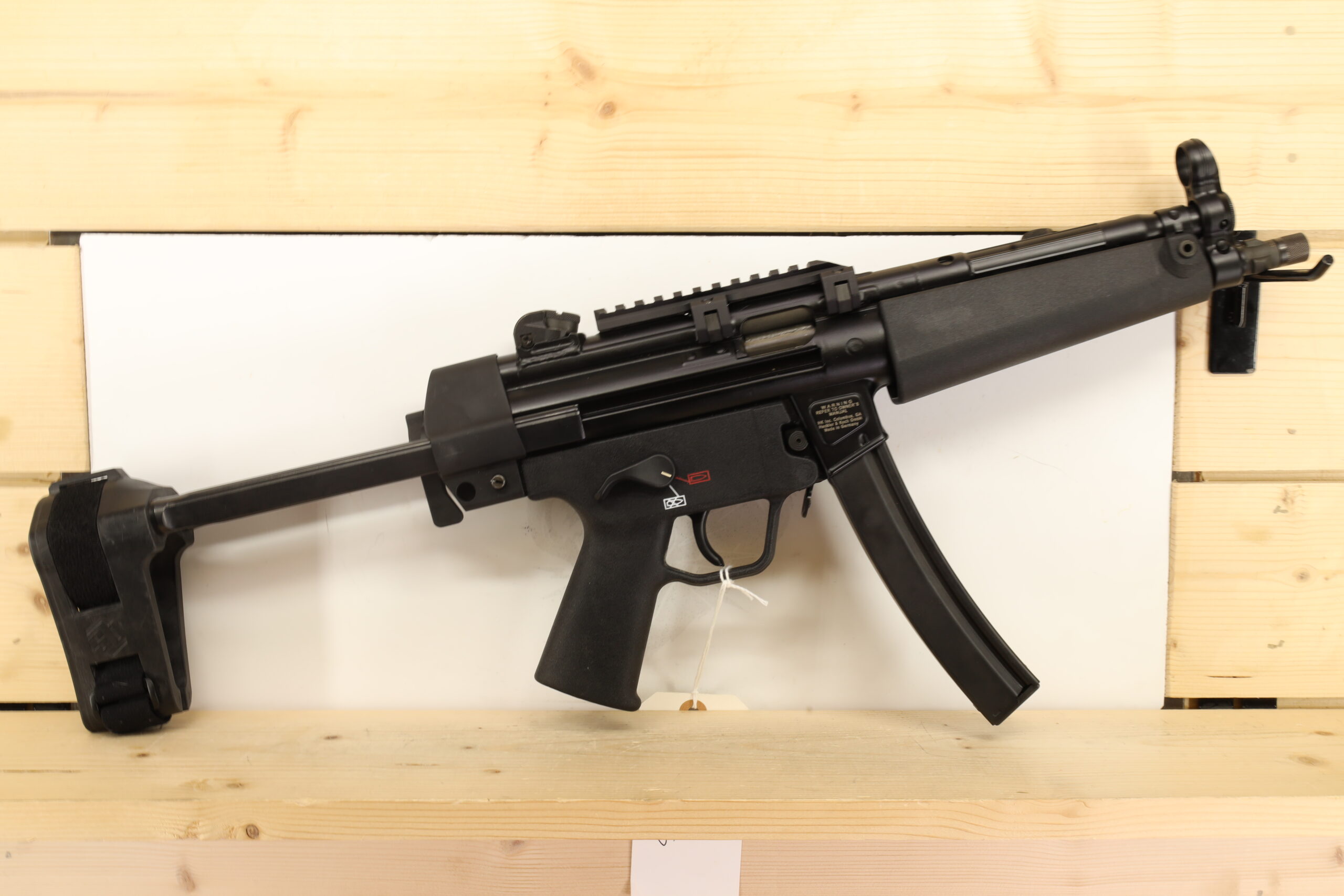 The Heckler & Koch SP5, a 9x19mm semi-automatic handgun, replicates the renowned MP5 submachine gun’s quality and feel. Featuring a 9″ threaded barrel, a thumb safety and two magazines, this is a firearm designed for those demanding quality and reliability in a compact package.