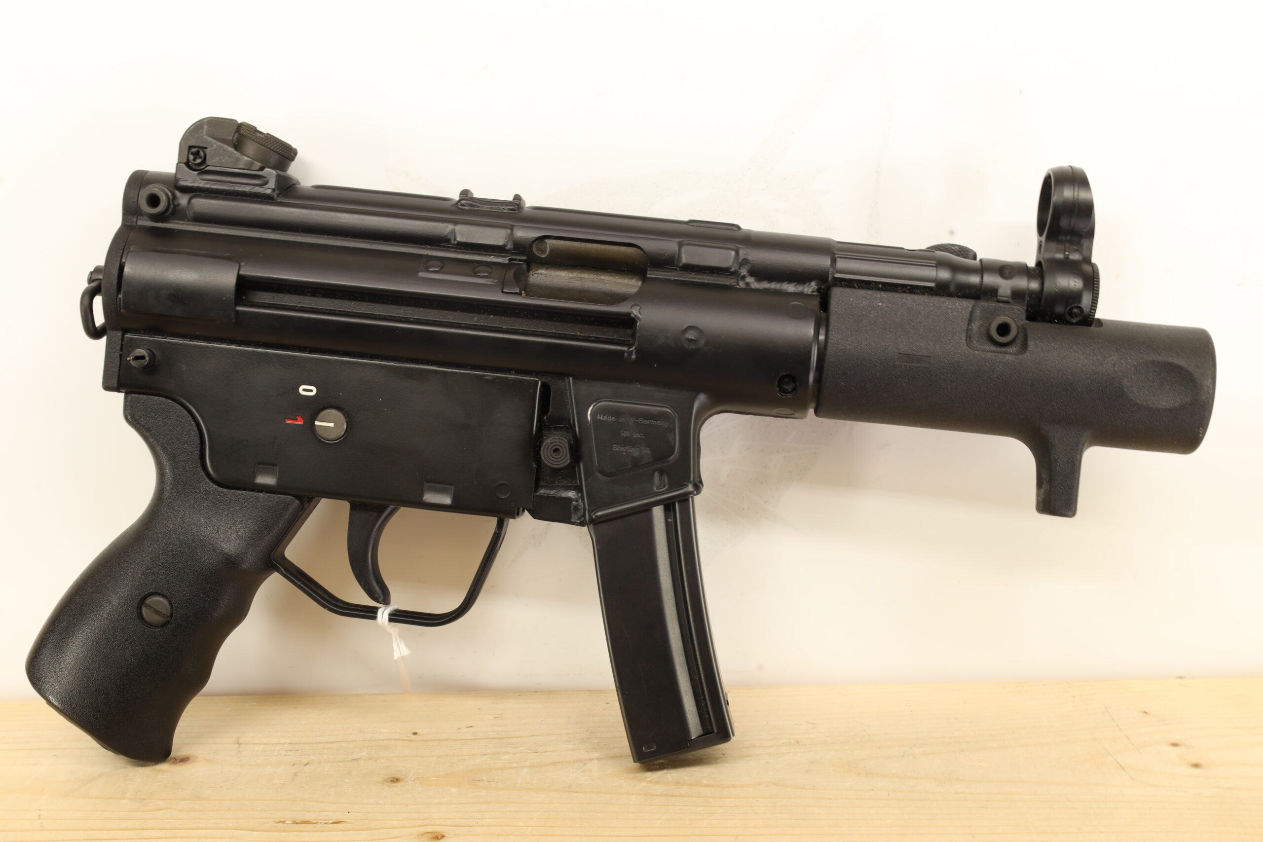 The **Heckler & Koch SP89 9x19mm**, with its 6.2″ barrel and thumb safety, is an appealing option for shooting enthusiasts. This short-barreled pistol offers a single high-capacity magazine and a box or bag. Further setting it apart is the iconic H&K brand that stands for the highest quality and innovative design.