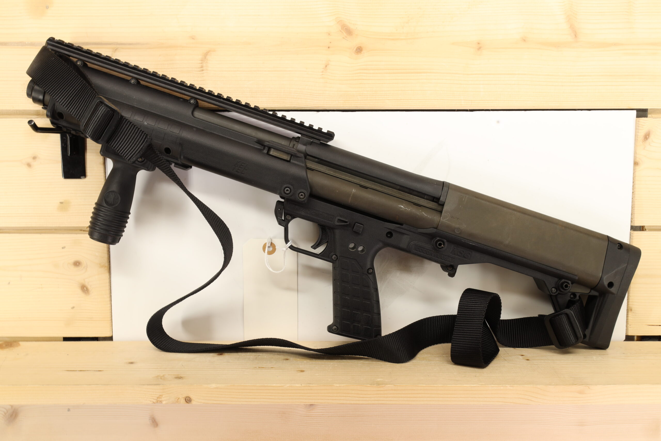 Redefining shotgun design, the Kel-Tec KSG 12GA, manufactured by Kel-Tec, is a compact, pump-action shotgun with an 18″ barrel. Its unique design facilitates Bullpup configuration and dual magazine tubes, allowing switchable feed for different firing modes. While it doesn’t contain a box or magazine, it does include a practical strap for easy carry.