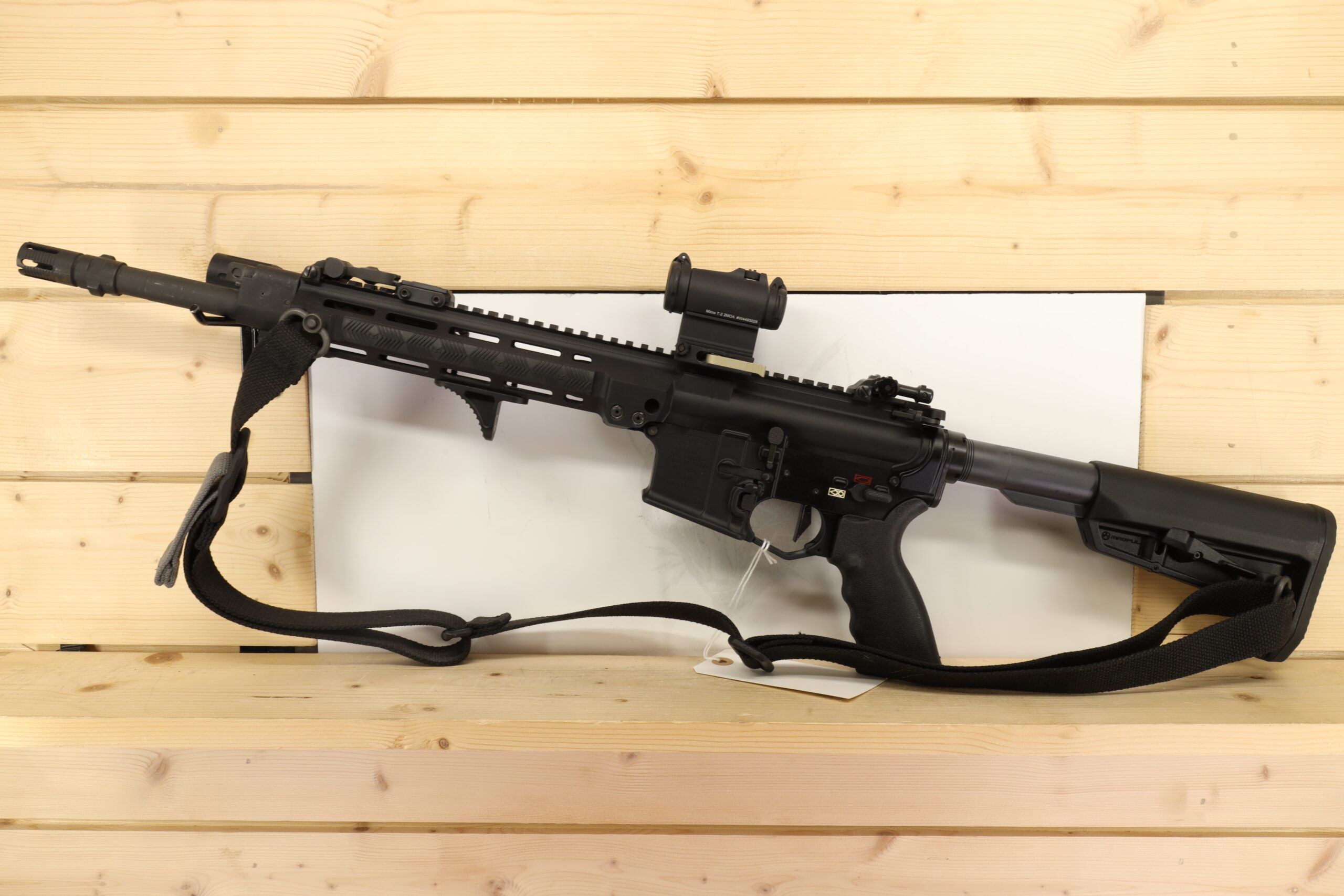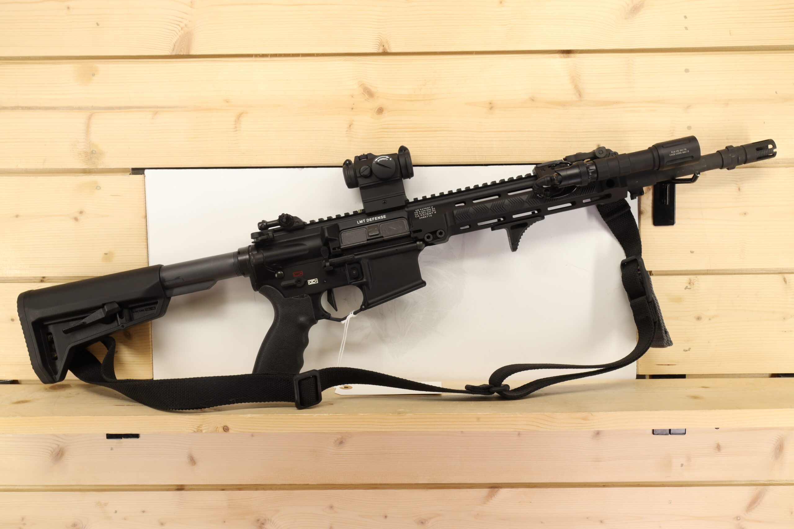 The LMT MARS-LS chambered in 5.56×45 is a well-respected semi-automatic rifle known for its performance and reliability. This model features a 14″ pin and weld barrel and a thumb safety. Included is an Aimpoint Modlife optic and a light but no magazine or box.