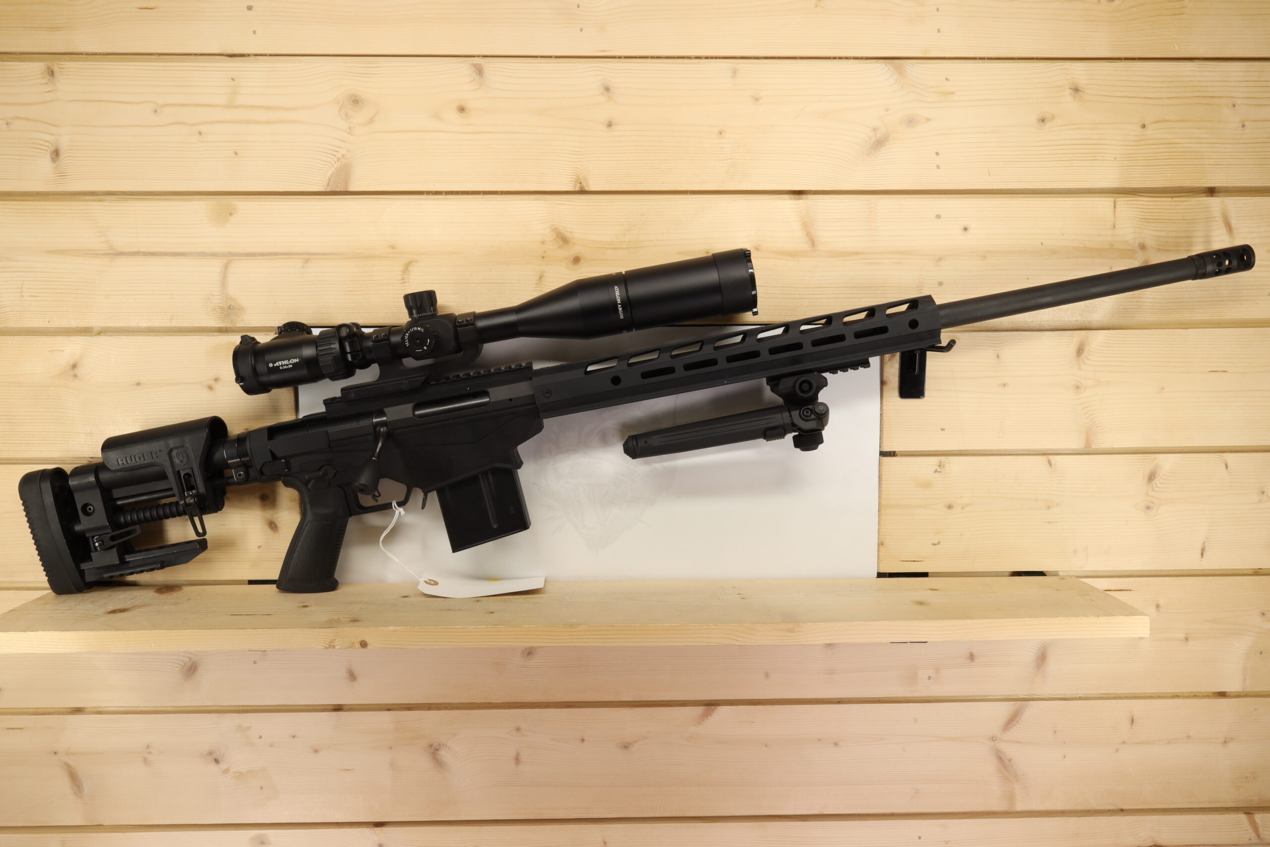 The Ruger Precision in 6.5 PRC features a 26″ threaded barrel designed for effective long-range shooting. The rifle is set up with an Athlon Argos 6-24×50 scope, enhancing its precision shooting capabilities. It also features a bipod, thumb safety, and one magazine. It’s well-known for its ergonomics and the precision of its rifling, which contribute to its overall excellence and durability.